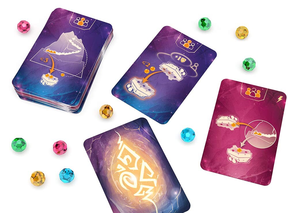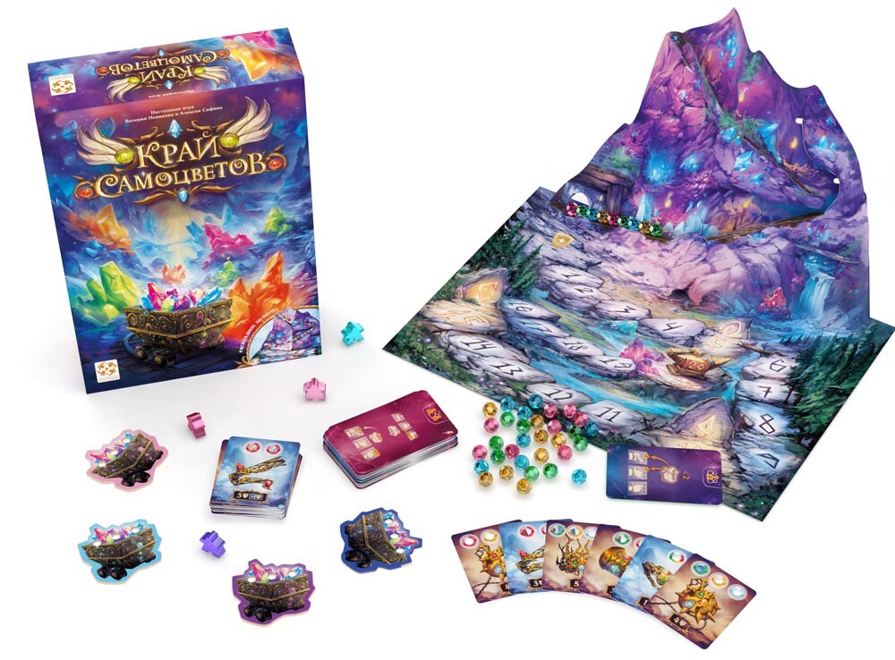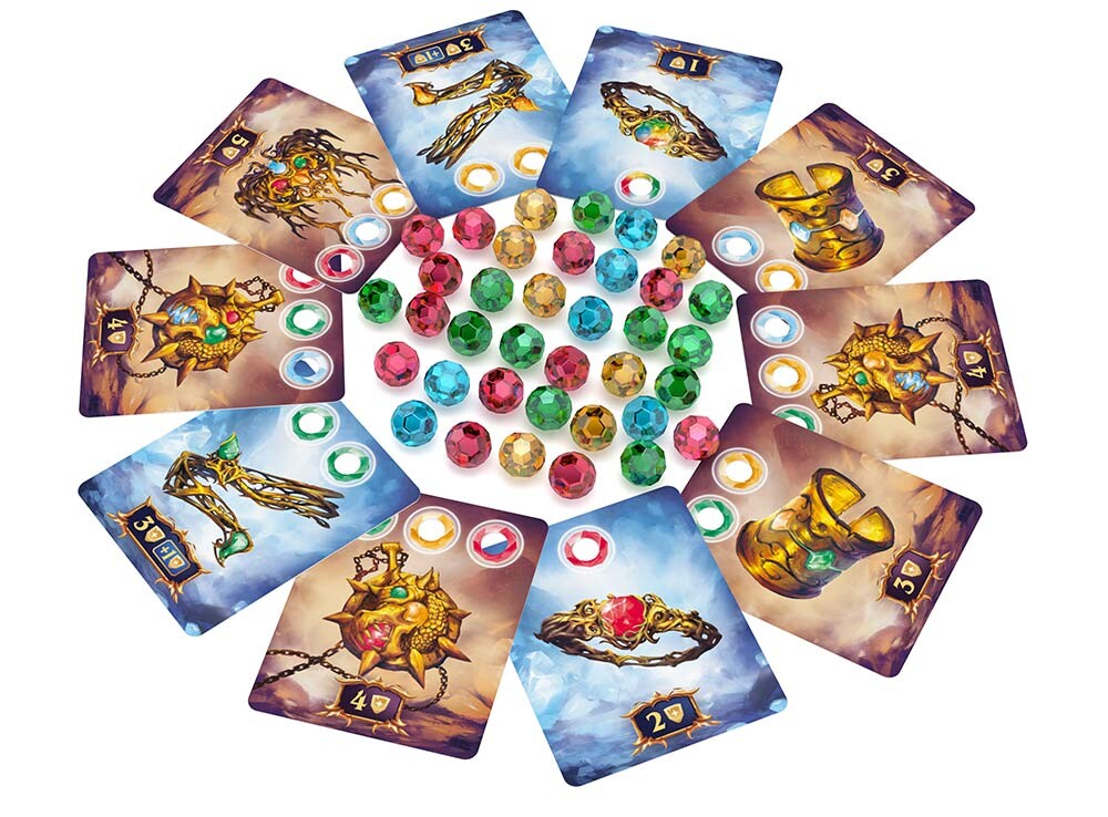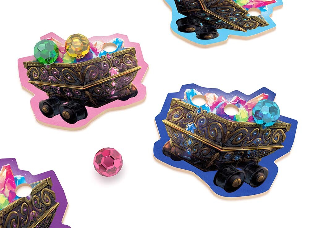 Хватайте кирку, пора добывать самоцветы! Примите участие в красочном соревновании, в котором участники должны будут добывать самоцветы, класть их себе в вагонетку, а затем вставлять в украшения. Добыча драгоценных камней должна происходить аккуратно, иначе в шахте может случиться обвал, а украшения с камнями позволят вам выполнить игровые задания, в которых игроки собирают наборы драгоценностей. Помимо этого, с помощью специальных карт действий вы сможете замедлить других участников, забирая у них украшения и меняя разноцветные камни в вагонетке. Кто сможете стать лучшим добытчиком самоцветов?