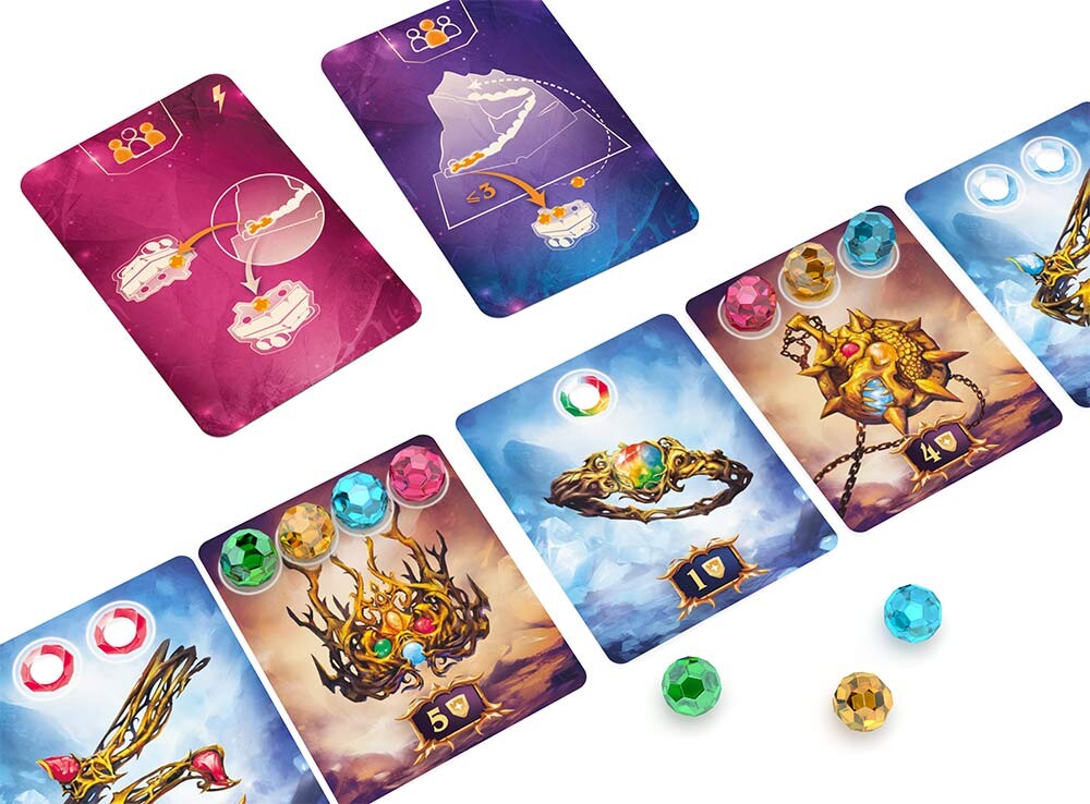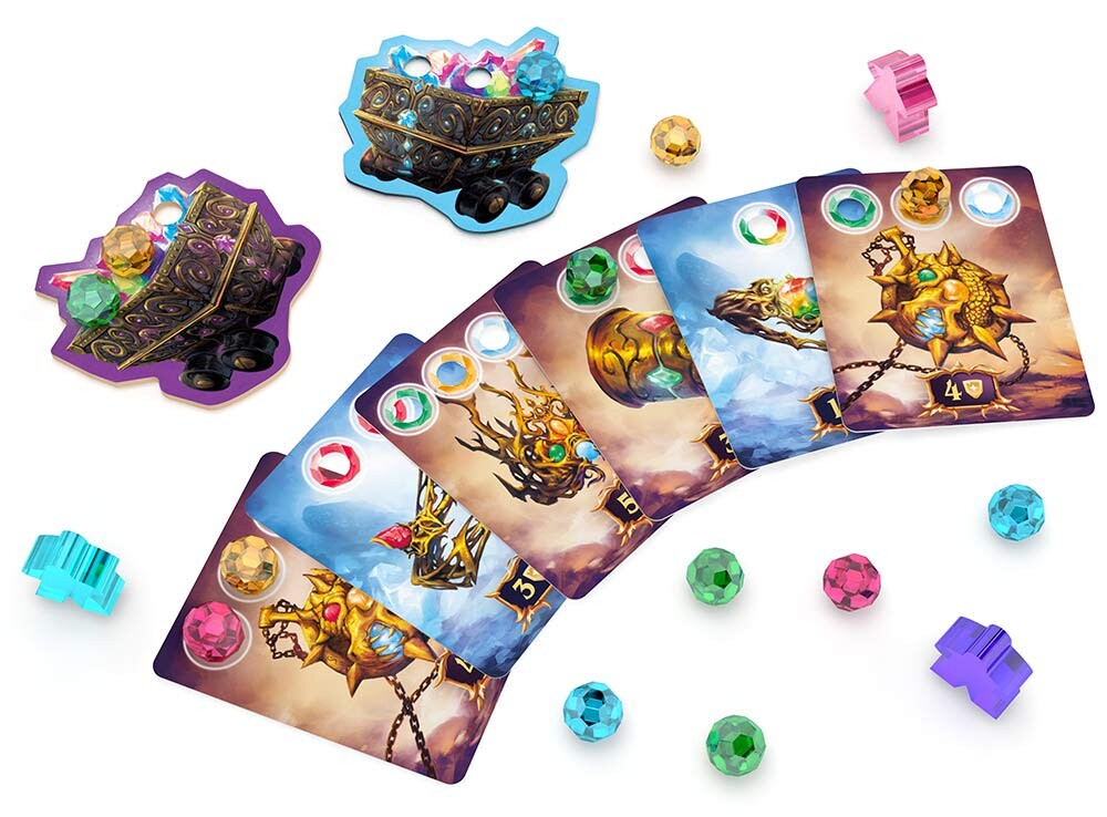 Примите участие в красочном соревновании, в котором участники должны будут добывать самоцветы, класть их себе в вагонетку, а затем вставлять в украшения. Добыча драгоценных камней должна происходить аккуратно, иначе в шахте может случиться обвал, а украшения с камнями позволят вам выполнить игровые задания, в которых игроки собирают наборы драгоценностей. Помимо этого, с помощью специальных карт действий вы сможете замедлить других участников, забирая у них украшения и меняя разноцветные камни в вагонетке. Кто сможете стать лучшим добытчиком самоцветов?