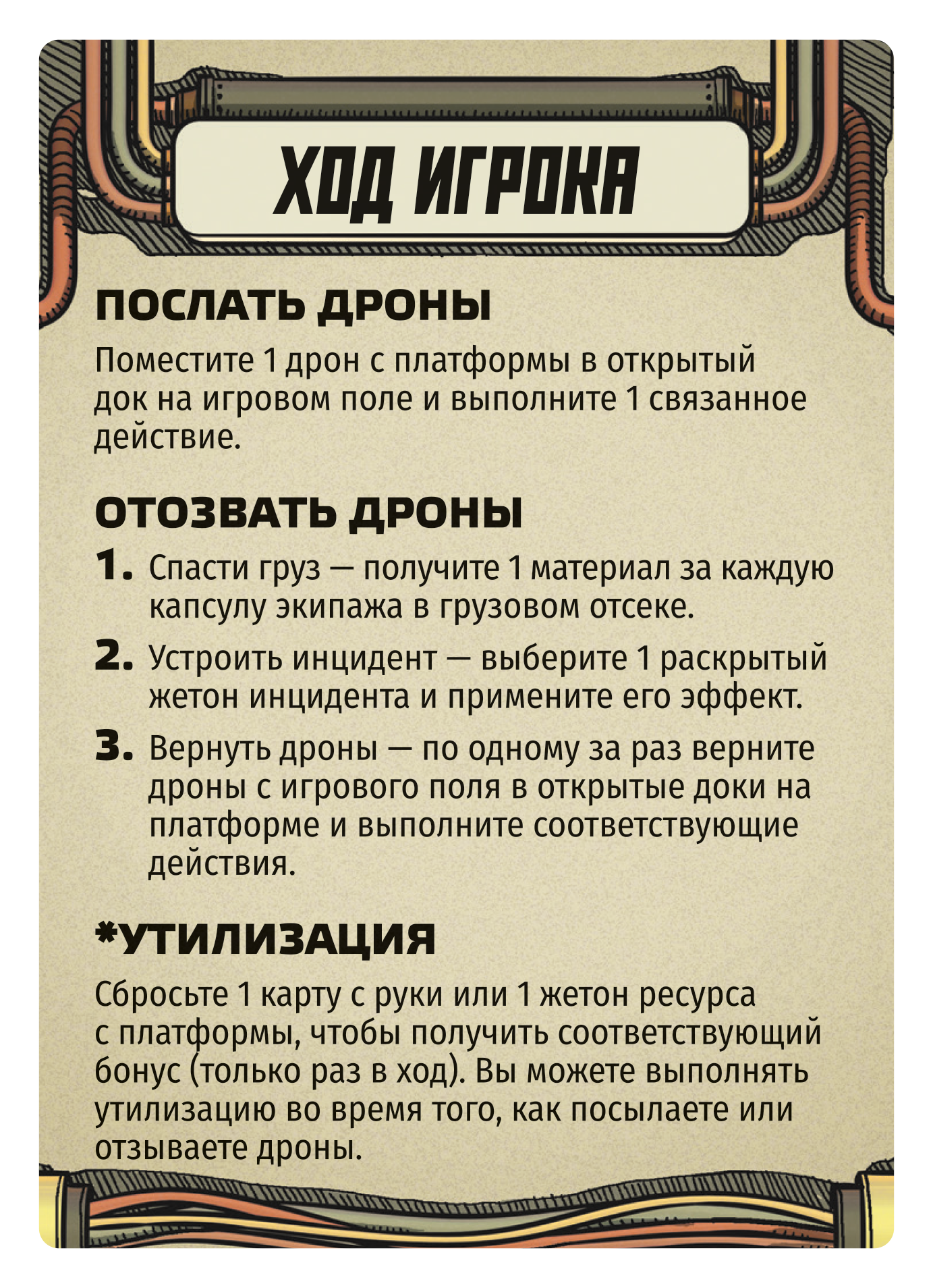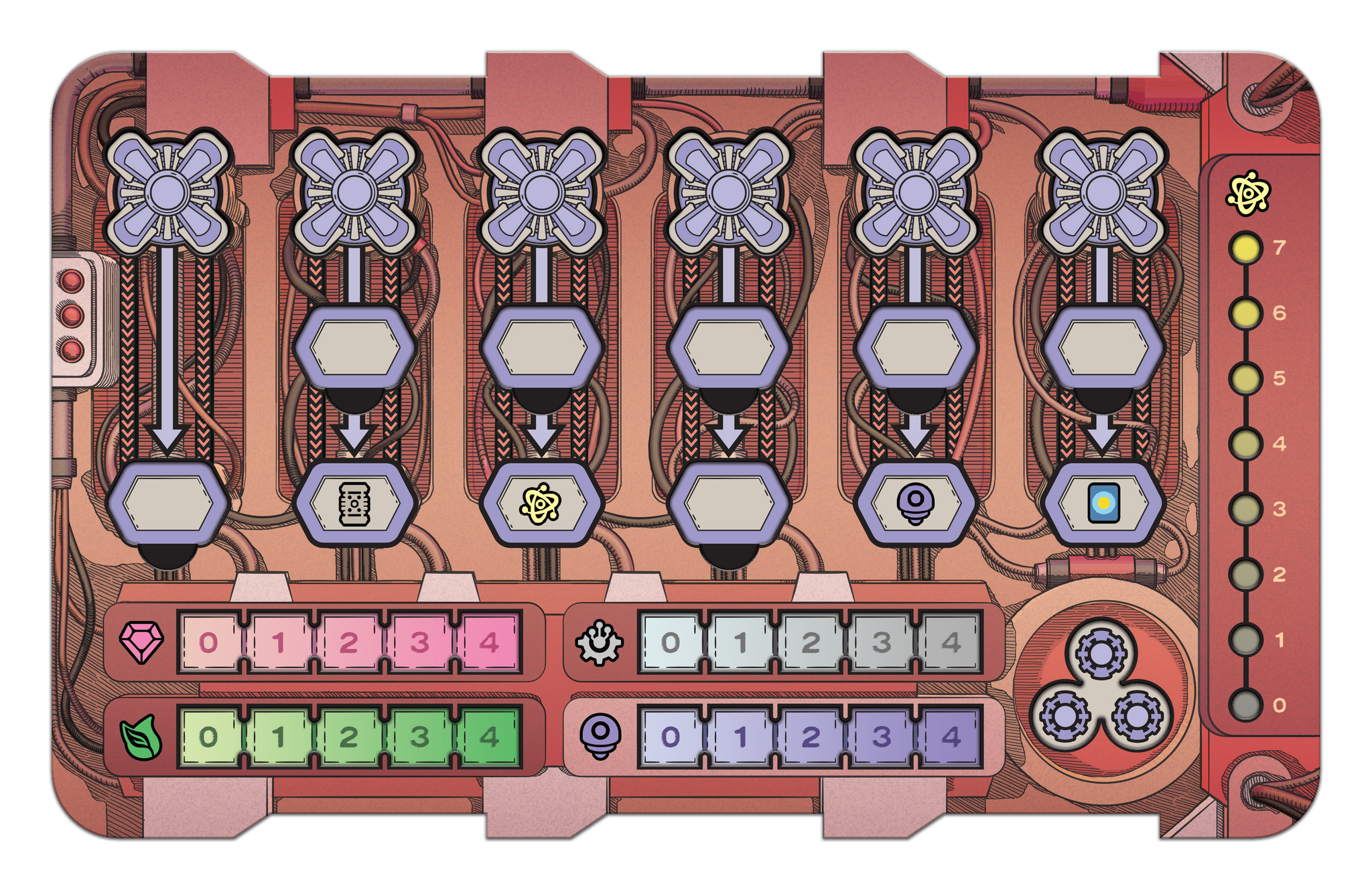В данной настольной стратегической игре участники возьмут под свой контроль дронов, с помощью которых будут исследовать части разбившегося корабля. На борту все еще есть выжившие, правда, прибывающие в криосне, а посему их следует разбудить. В свой ход можно выполнить несколько действий, собирать ресурсы, исследовать подземные пещеры и улучшать свой игровой модуль. С помощью специальных карт технологий игроки смогут получить постоянный положительный эффект и заселять колонистов в пещеры.