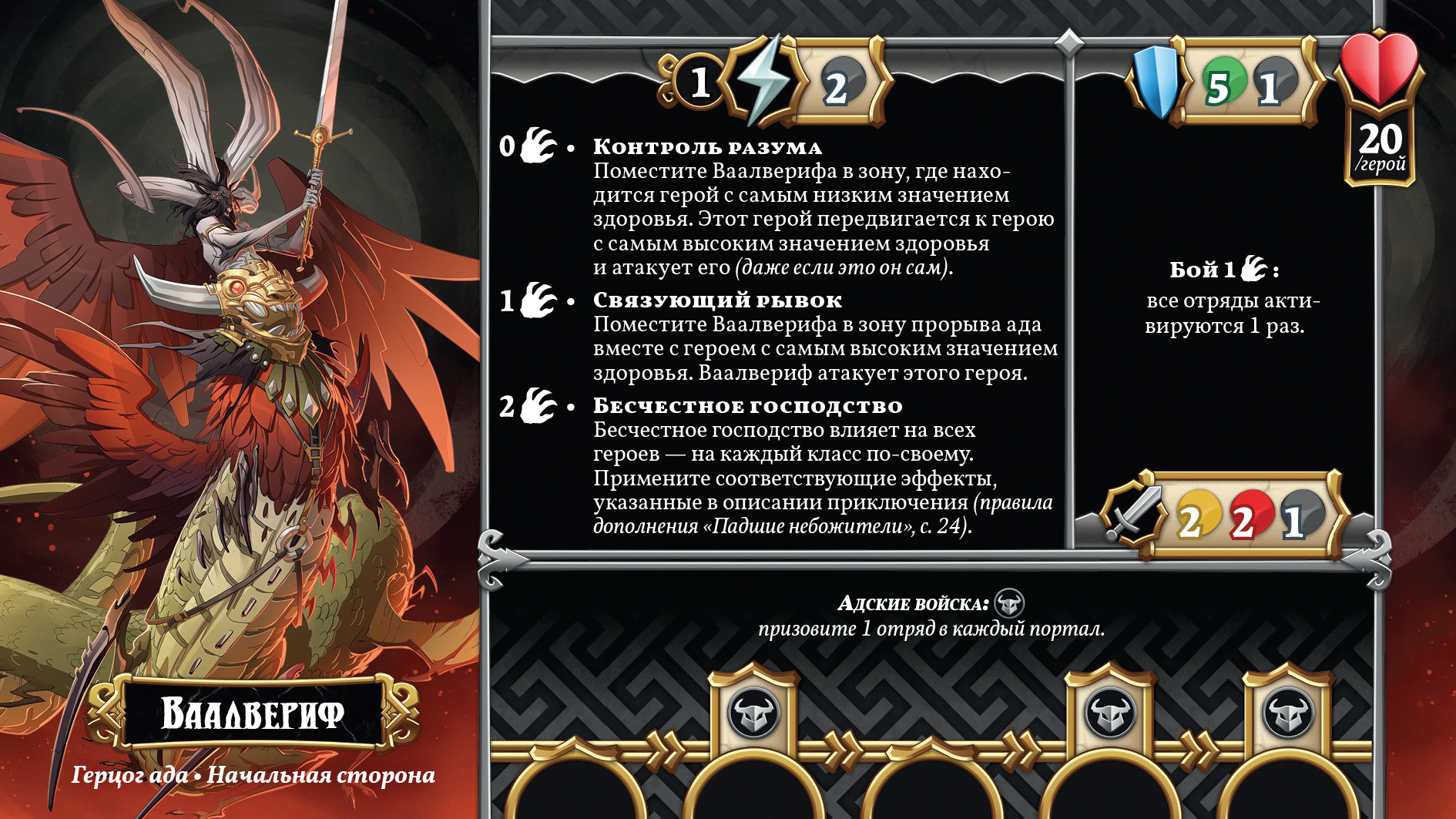 В данном дополнении для знаменитой настольной игры вас ждет режим полноценного сюжета, который сделает все ваши приключения более осмысленными. Помимо этого, теперь игроки смогут улучшать своих героев на пять новых уровней и освоить новые навыки, которые пригодятся в прохождении. Как и в оригинале, вас ждет высокое исполнение компонентов и красочное оформление. Сражайтесь с монстрами, применяйте особые приемы, улучшайте своего персонажа и защитите небеса от сил зла!