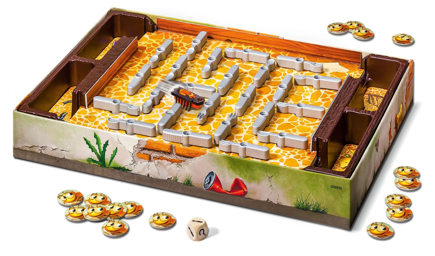 В данной настольной игре участники возьмут на себя роль охотников за тараканом. С помощью вилки, ножа или ложки вам предстоит загнать паразита в ловушку, и здесь очень пригодится хорошая реакция и внимательность, ведь таракан работает на батарейке и быстро и хаотично перемещается по полю с помощью специальных электронных механизмов. Первый из игроков, кто добьется успеха, получит победный жетон. Участник, собравший пять жетонов, станет победителем!