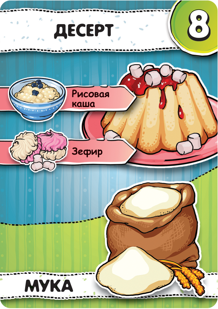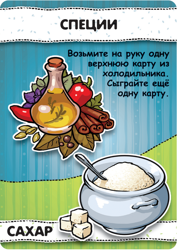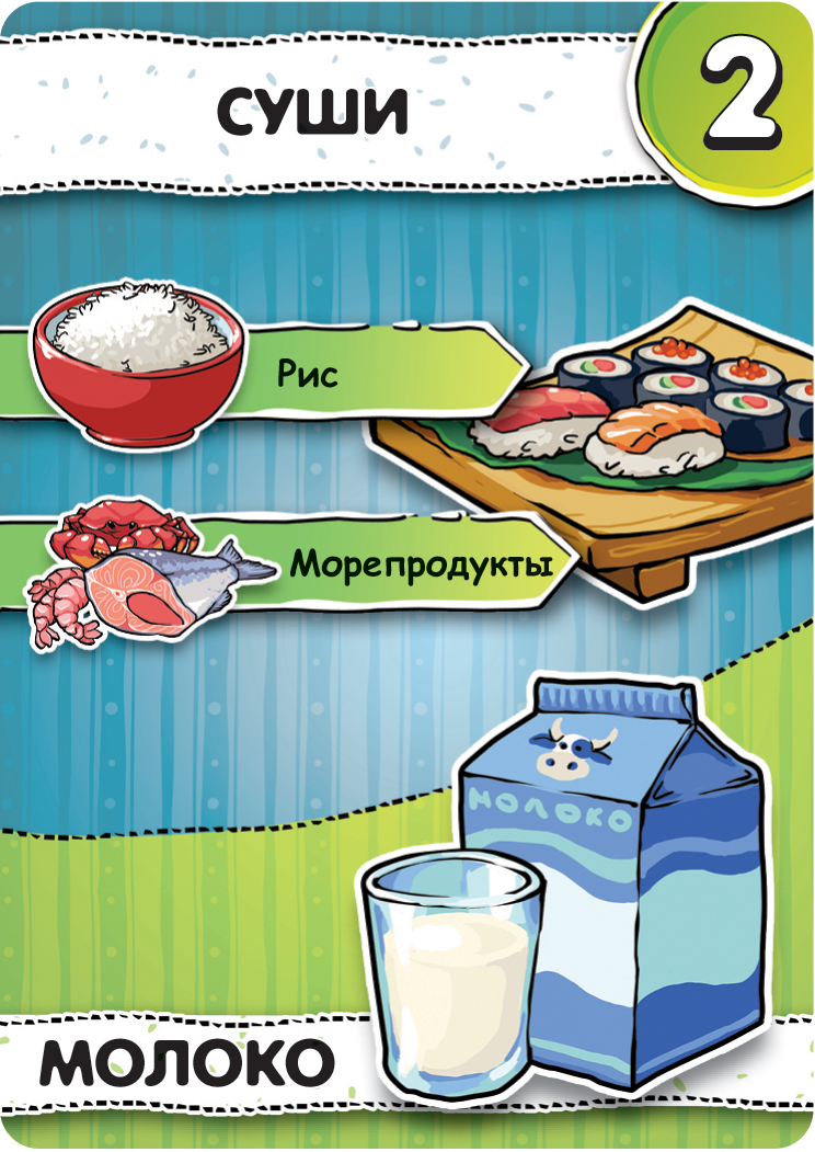 Добро пожаловать на кухню! Сегодня мы узнаем, кто является лучшим поваром, и данная игра нам в этом поможет! В коробке гурманов встретит огромное количество карт с разнообразными продуктами. Карты выкладываются игроками в центре стола, после чего на основе двух или нескольких ингредиентов создается блюдо. Перед участниками стоит постоянная дилемма - приготовить блюдо сейчас, и получить небольшое количество призовых очков, либо подождать, когда другой игрок положит на стол дополнительный компонент, благодаря которому можно будет приготовить более редкое и ценное блюдо. Некоторые рецепты могут потребовать уже готовые кулинарные шедевры, которые вы вольны взять у вашего соседа. Но будьте осторожны - в этом случае он получит половину победных очков за это блюдо! Как только карты закончатся, победит игрок, набравший больше всего призовых очков. Надевайте колпак, доставайте фартук, пришло время стать лучшим кулинаром!