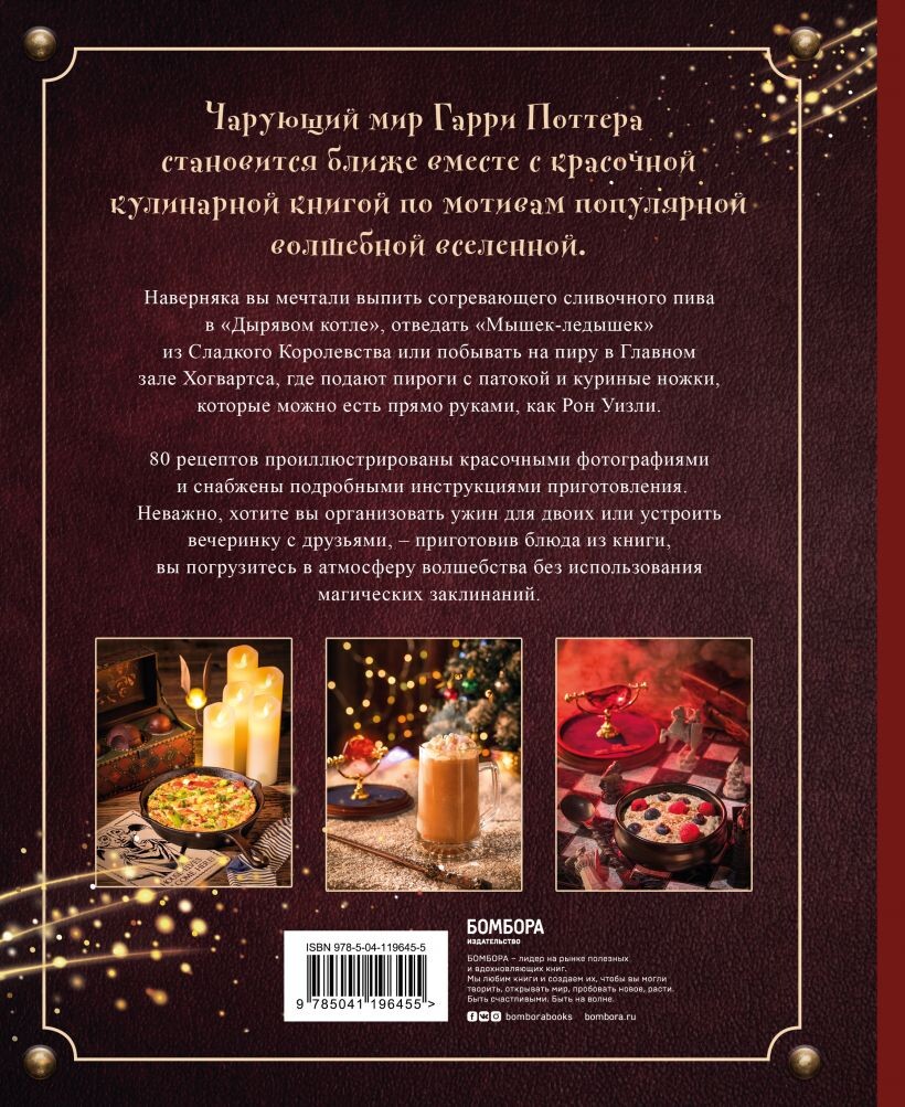 Погрузитесь в чарующий мир Гарри Поттера вместе с красочной кулинарной книгой по мотивам популярной волшебной вселенной. 80 рецептов от сливочного пива до каменного печенья Хагрида проилюстрированны красочными фотографиями и снабжены подробными инструкциями приготовления. Мечтали оказаться в «Дырявом котле», на семейном ужине Уизли или на пире в Хогвартсе? Теперь вы без проблем сможете устроить вечеринку с друзьями и окунуться в атмосферу волшебства без использования магических заклинаний.