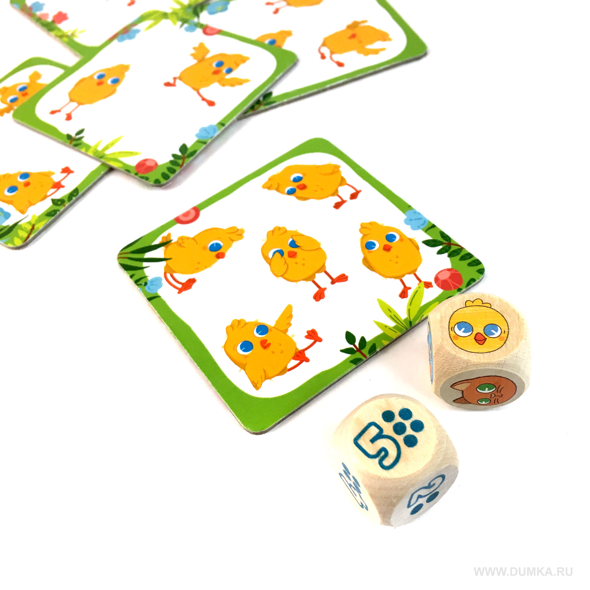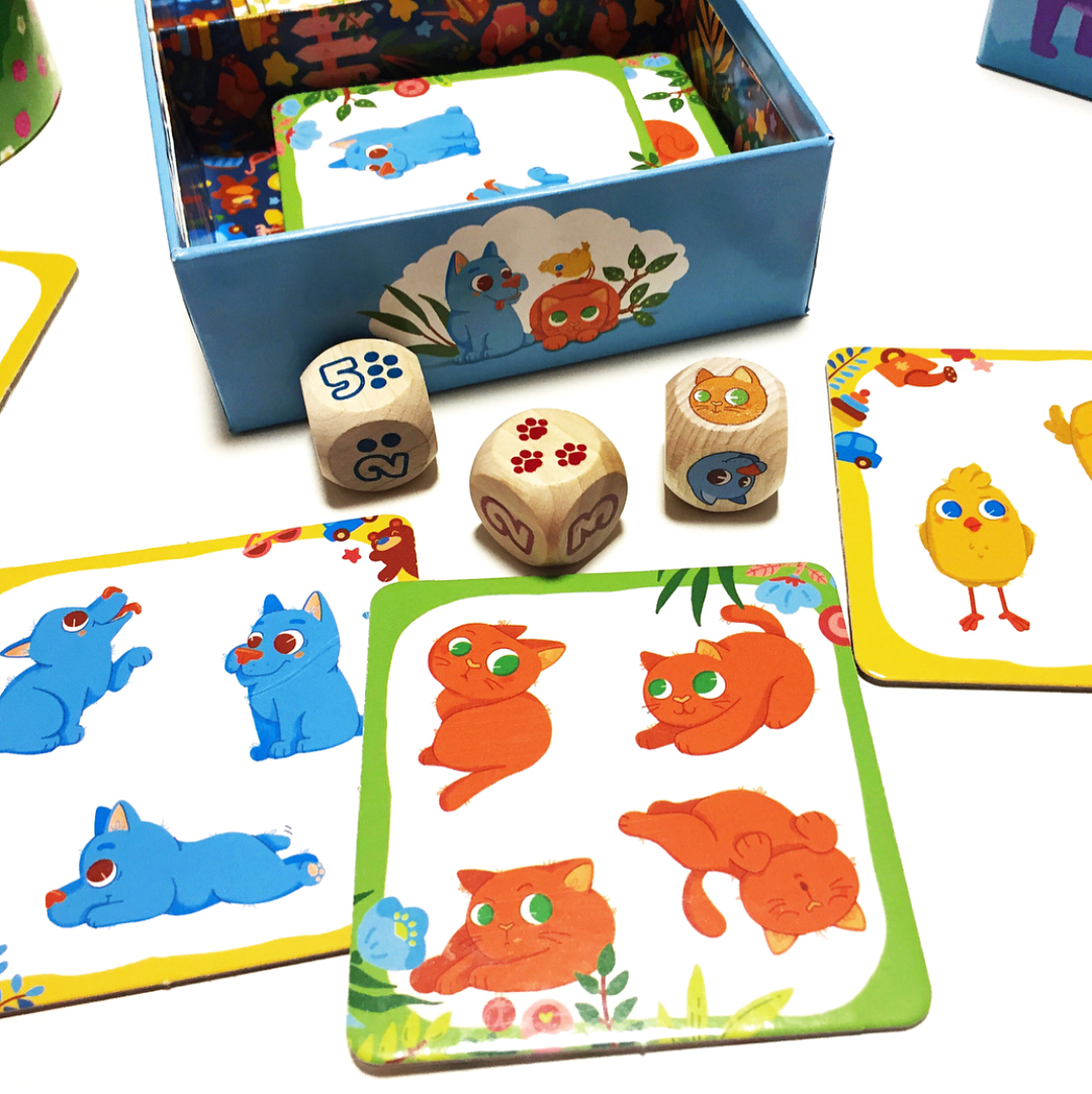 В данной развивающей настольной игре участникам предстоит изучать и различать цифры. Кидая кубики - один с животным, другой с числом, игроки стараются найти выпавшее значение среди карт с милыми иллюстрациями. Если на столе есть карта с результатом броска по рисунку и количеству, участник забирает этого зверя себе и отводит его домой.