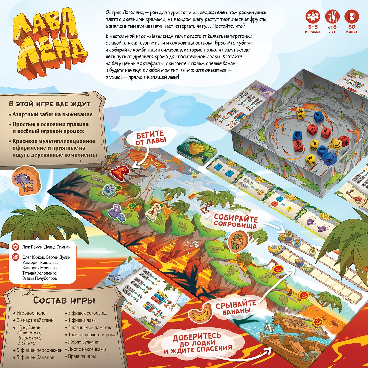 Пальмы, экзотические птицы и жаркое солнце, - райский остров во всей красе, полон спокойствия и безмятежности. Есть только одно "но" - река лавы приближается! В данной соревновательной настольной игре участники окажутся перед извергающимся вулканом, и теперь им предстоит как можно быстрее спастись с небольшой территории острова. Игрокам следует быть крайне быстрыми, и собрать в начале игры три кубика одной рукой. Благодаря значению на кубиках, участники смогут собирать реликвии, перемещаться по полю, приобретать карты с дополнительными эффектами, и даже ставить ловушки друг для друга. Лава неумолимо приближается, и времени все меньше. Кто успеет добраться до лодки и собрать как можно больше сокровищ? Давайте узнаем!