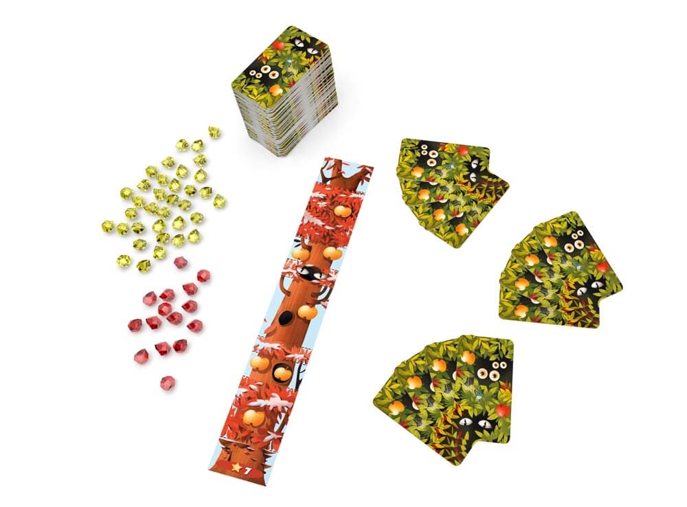 Яблоки растут весьма высоко, но обитатели леса готовы встать друг другу на голову ради общего дела. Есть только один нюанс - определить высоту дерева будет не так уж просто! Получив на руки карты с животными, игроки по очереди строят новые башни, либо докладывают карты к уже существующим. Как только каждый из игроков построит по три башни, начинается сбор урожая. Лесные жители обладают своими уникальными способностями - кто-то способен доставать яблоки с далеких веток, кто-то найдет их в дупле дерева. Успешно выкладывая карты с разными животными в определенном порядке, игроки могут получить преимущество.