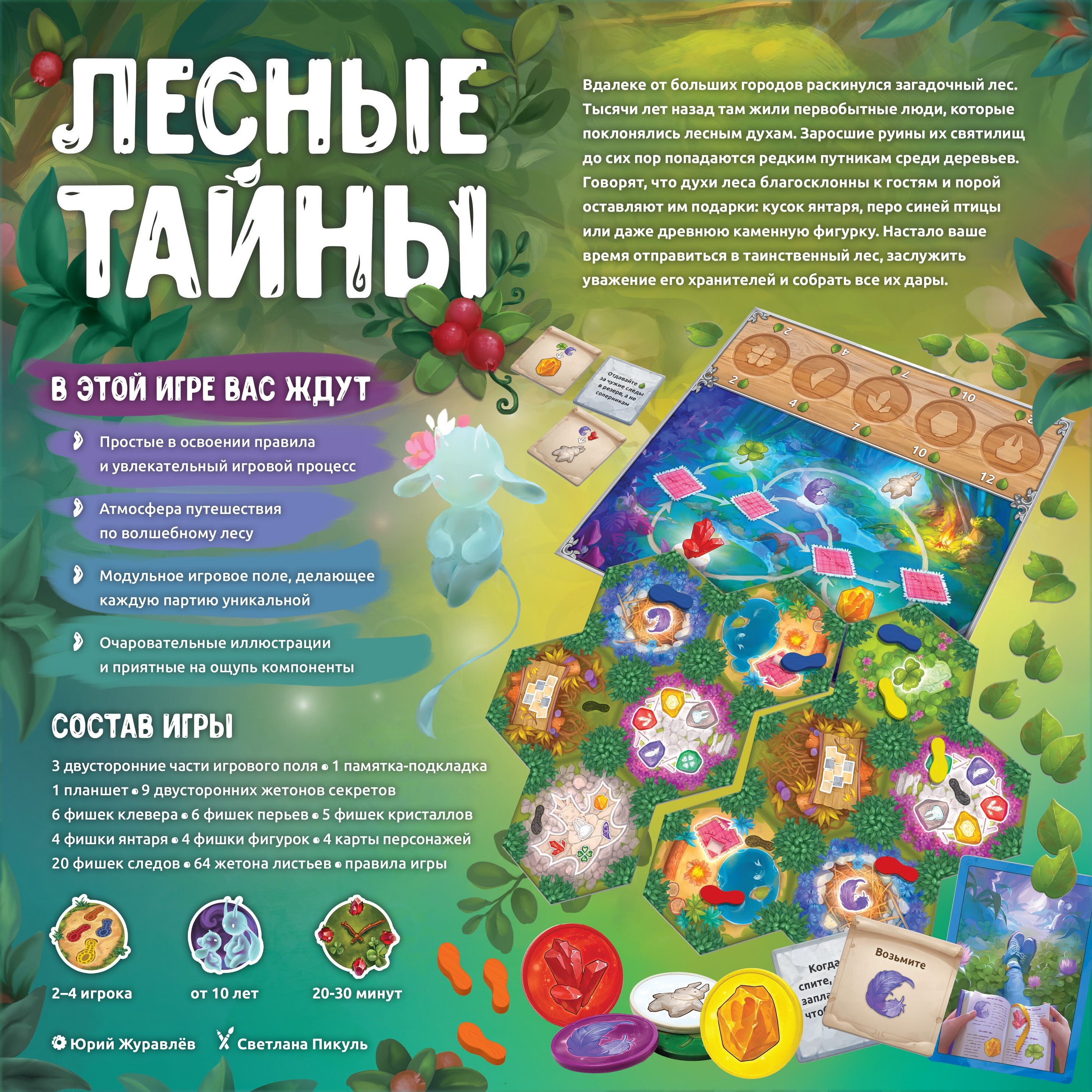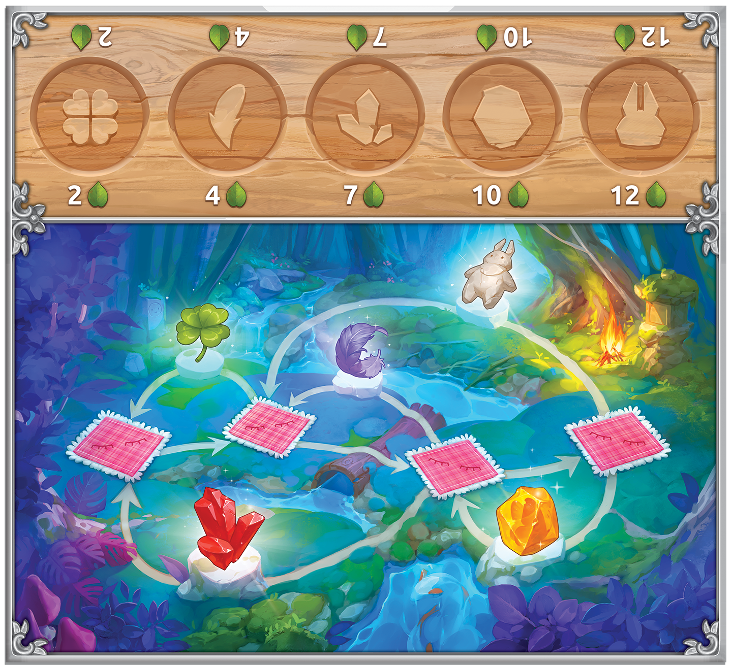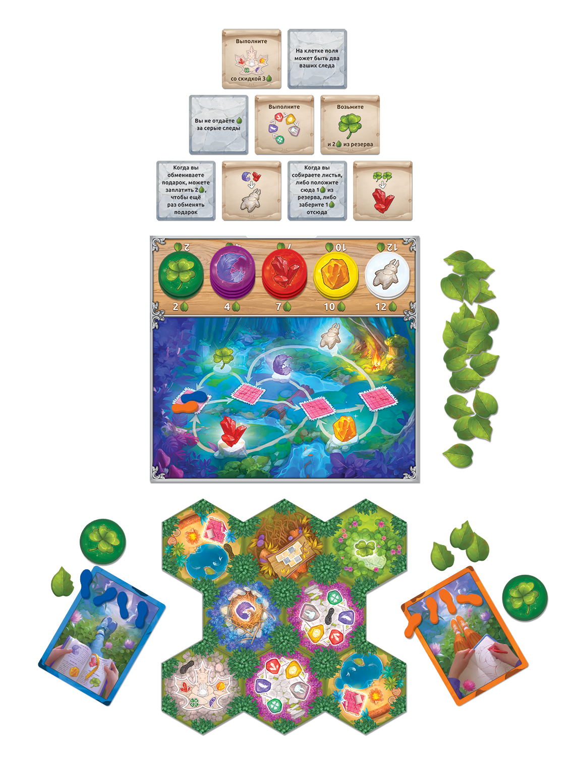 Игроки выступят в роли исследователей сказочного леса, по которому им предстоит перемещаться. Двигаясь по клеткам поля, участники оставляют следы, благодаря которым другие игроки не смогут пройти по их клеткам. Оказываясь на том, или ином участке пути, игроки могут выполнить специальное действие, которое даст им преимущество. Действия приобретаются за местную валюту - зеленые листья, которые можно собирать по ходу партии. Главной задачей станет получение пяти предметов от духов леса, оберегающих эти земли. Первый игрок, которому удастся достичь этой цели, станет победителем! Перемещайтесь по полю, стараясь создать трудности другим игрокам, применяйте способности и получайте артефакты!