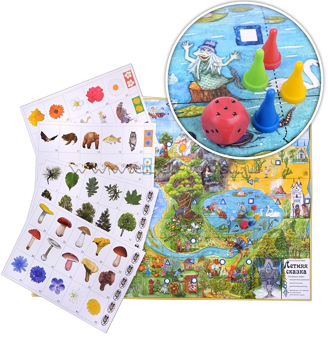 При этом, в данную игру можно играть как и в викторину, ведь в комплекте идут карточки на изучение летней природы. Как называются цветы, какие грибы съедобные, а какие лучше не трогать, - на все эти вопросы игра предлагает найти вам ответ. Кто первым доберется до конца и ответит на все вопросы?