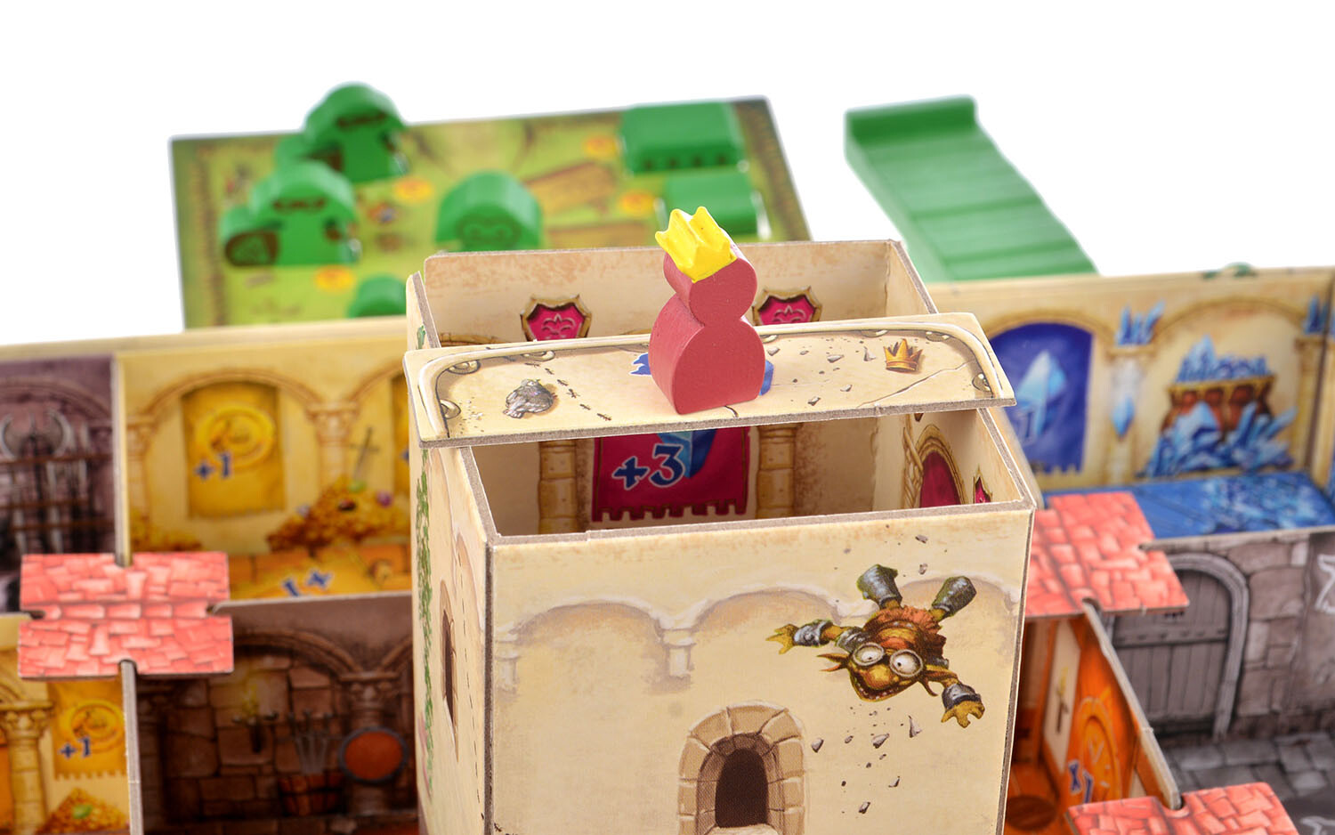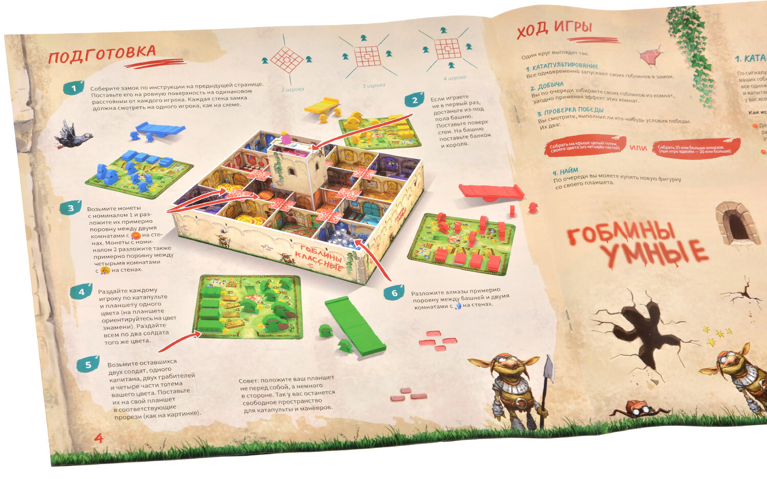 В данной настольной игре участникам предстоит посоревноваться в сборе тотема своего клана. Каким образом? Все очень просто - запускайте гоблинов в полет! Перед вами замок с отвесными стенами, в центре которого располагается башня короля. Если ваш гоблин приземлится в сокровищнице, вы сможете получить алмазы. Их можно потратить на новых солдат, а за сбитую фигурку короля игроки смогут получить особую награду.