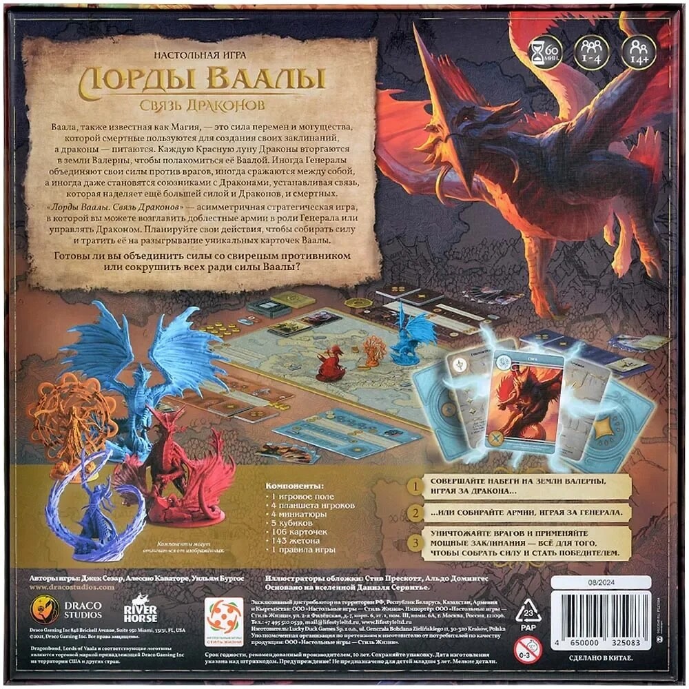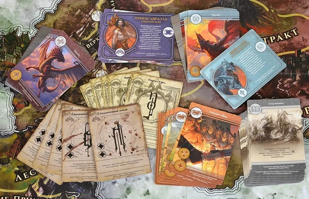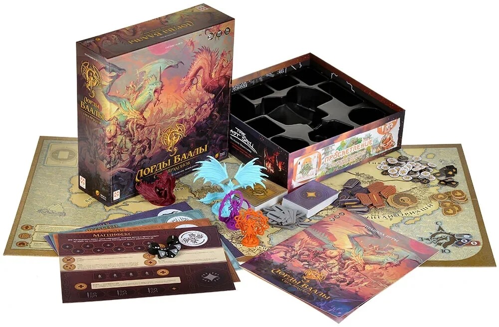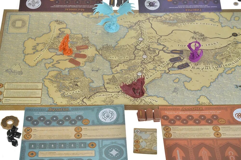 Игровое поле4 планшета игроков4 миниатюры5 кубиков106 карт143 жетонаПравила игры