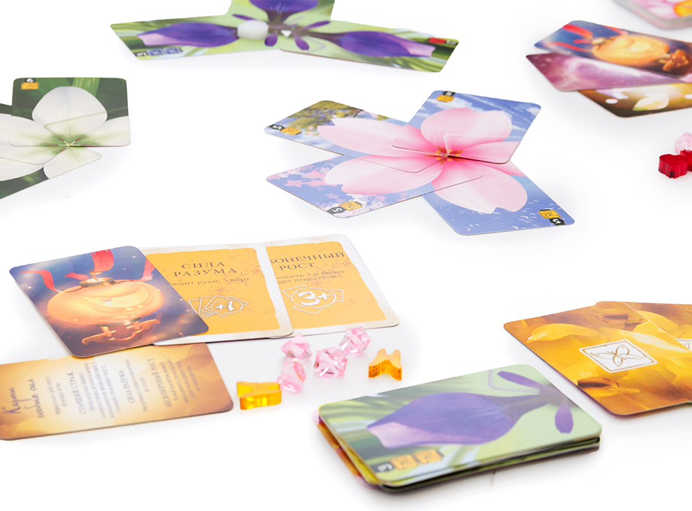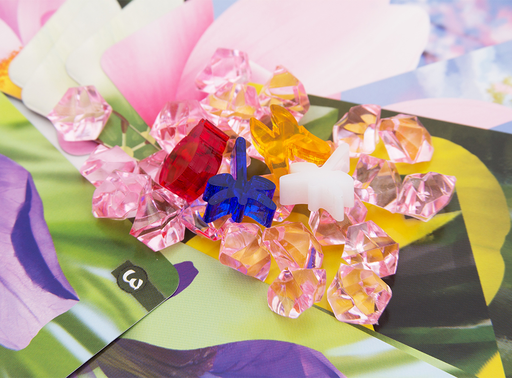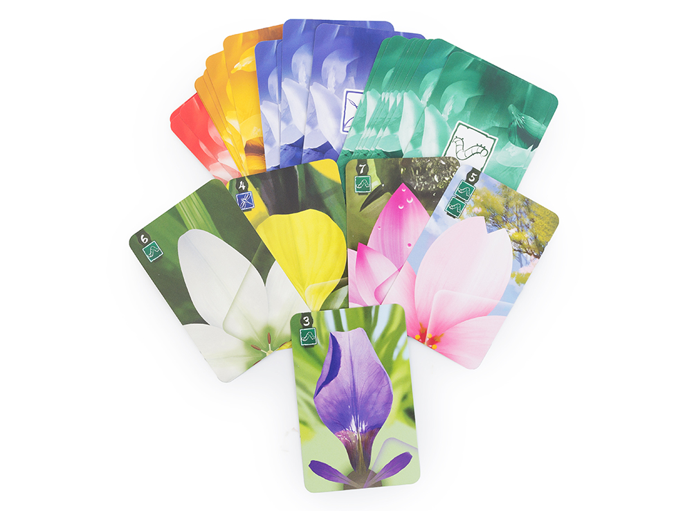В вашем распоряжении окажутся карты с лепестками, с помощью которых игроки будут выстраивать цветы. Разные растения требуют разное количество карт, и, собрав его, игрок может поставить сверху одно из своих насекомых. Составляя цветы общими усилиями, игроки не забывают и про личные интересы, стараясь вовремя срывать собранные цветы. За это они могут получить волшебные карты, обладающие различными бонусными эффектами.