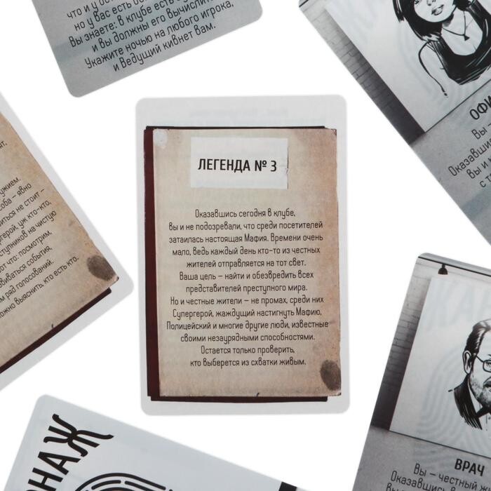 Участники игры поделятся на мафию и мирных жителей. Задача мафиози - ликвидировать всех гражданских, а простым людям нужно понять, кто бандит и вычислить его. Есть также и третья сторона - часть игроков будет помогать и одной, и другой стороне, преследуя свои цели. Помимо классических правил, в данной версии есть еще и карты событий, которые внесут дополнительного интереса в игру.