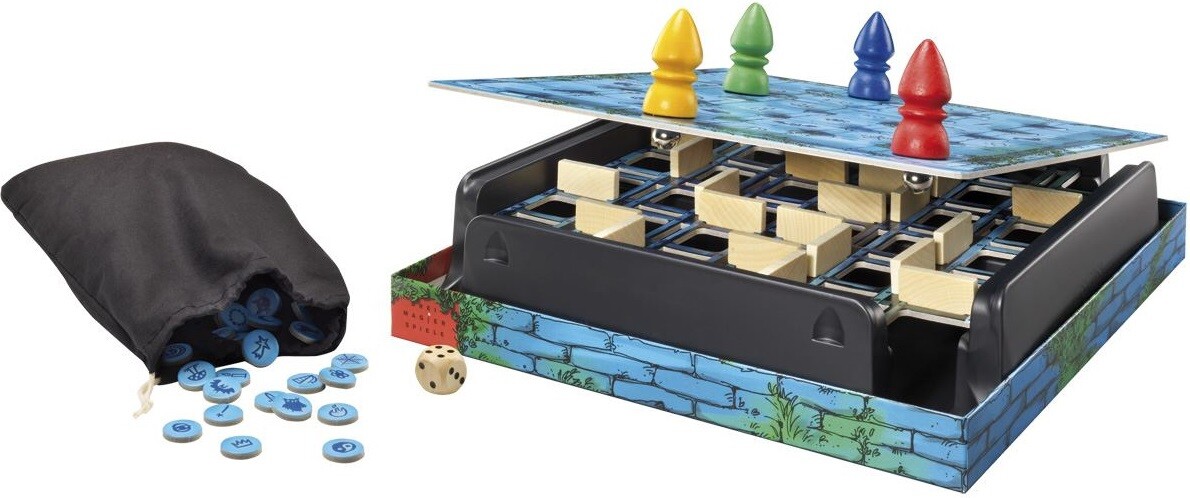 В данной красочной настольной соревновательной игре участники будут перемещаться по лабиринту с невидимыми стенами. Количество шагов каждого чародея будет определяться броском кубика, а направление движения может быть любое, но не по диагонали. Каждому следует быть крайне осторожным, ведь если чародей наткнется на невидимую стену, ему придется начинать с самого начала. Внимательно следя за происходящим на поле, вы будете запоминать расположение стен и постепенно найдете выгодный путь для победы.