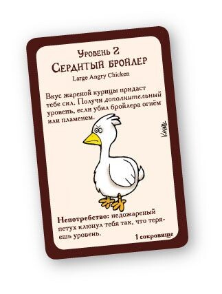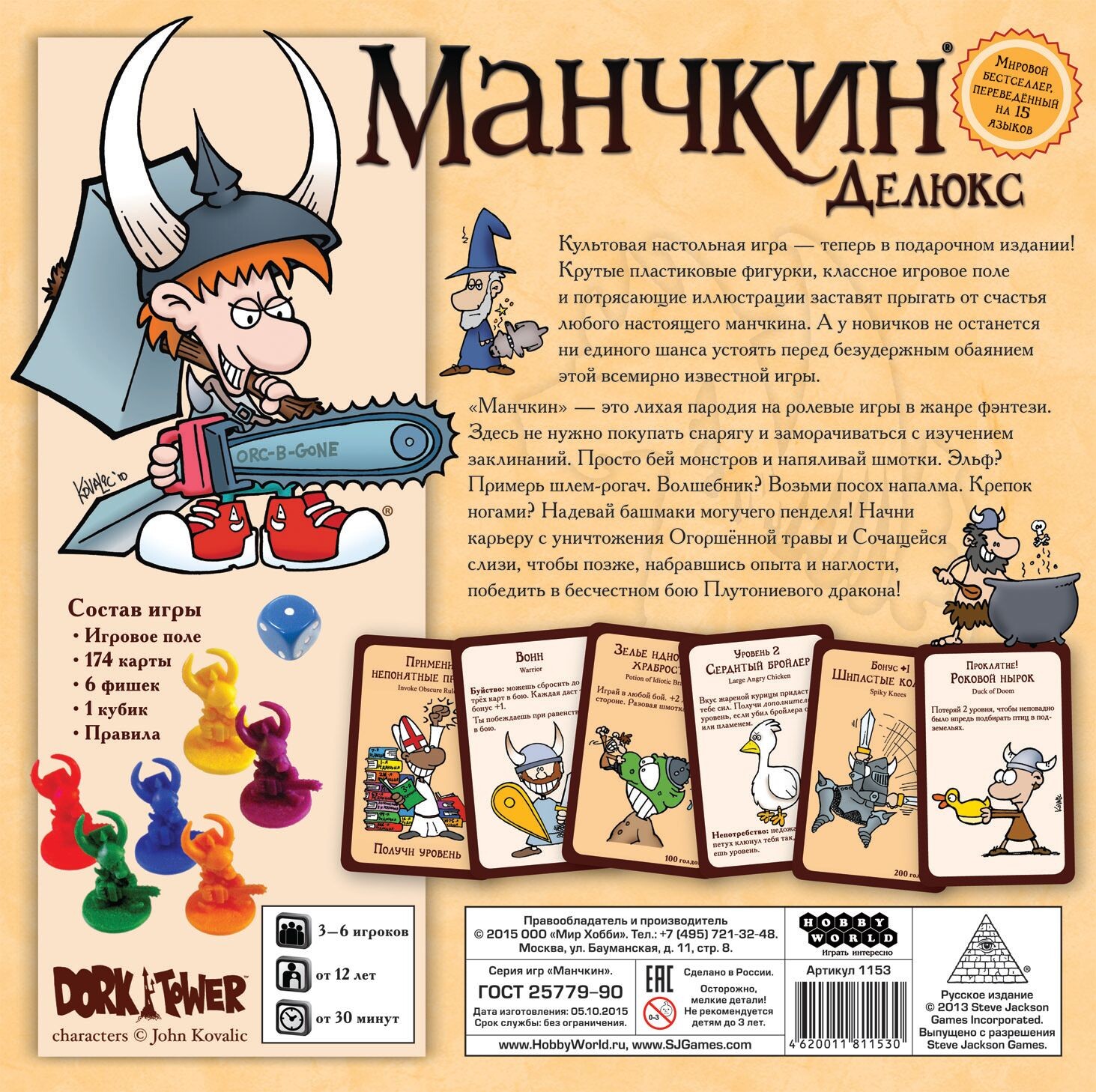 Легендарная игра теперь в подарочном издании! Классика настольных игр теперь с полем и пластиковыми фигурками. Правила остались неизменны - игроки стараются всеми возможными способами достичь десятого уровня. Добывая различное оружие и полезные предметы, они сражаются с монстрами и стараются замедлить соперников, либо помочь им для собственной выгоды. Веселый пародийный стиль теперь перекочевал с карт на игровое поле, по которому игроки перемещают фигуры своих персонажей. Конечно же, карты никуда не делись, и благодаря им игроки получат множество вариаций достижения своей цели. Окунитесь в мир знаменитой игры и станьте победителем!