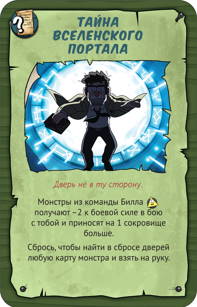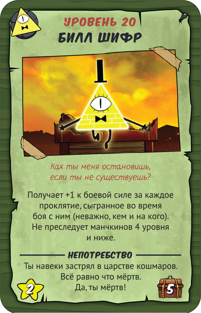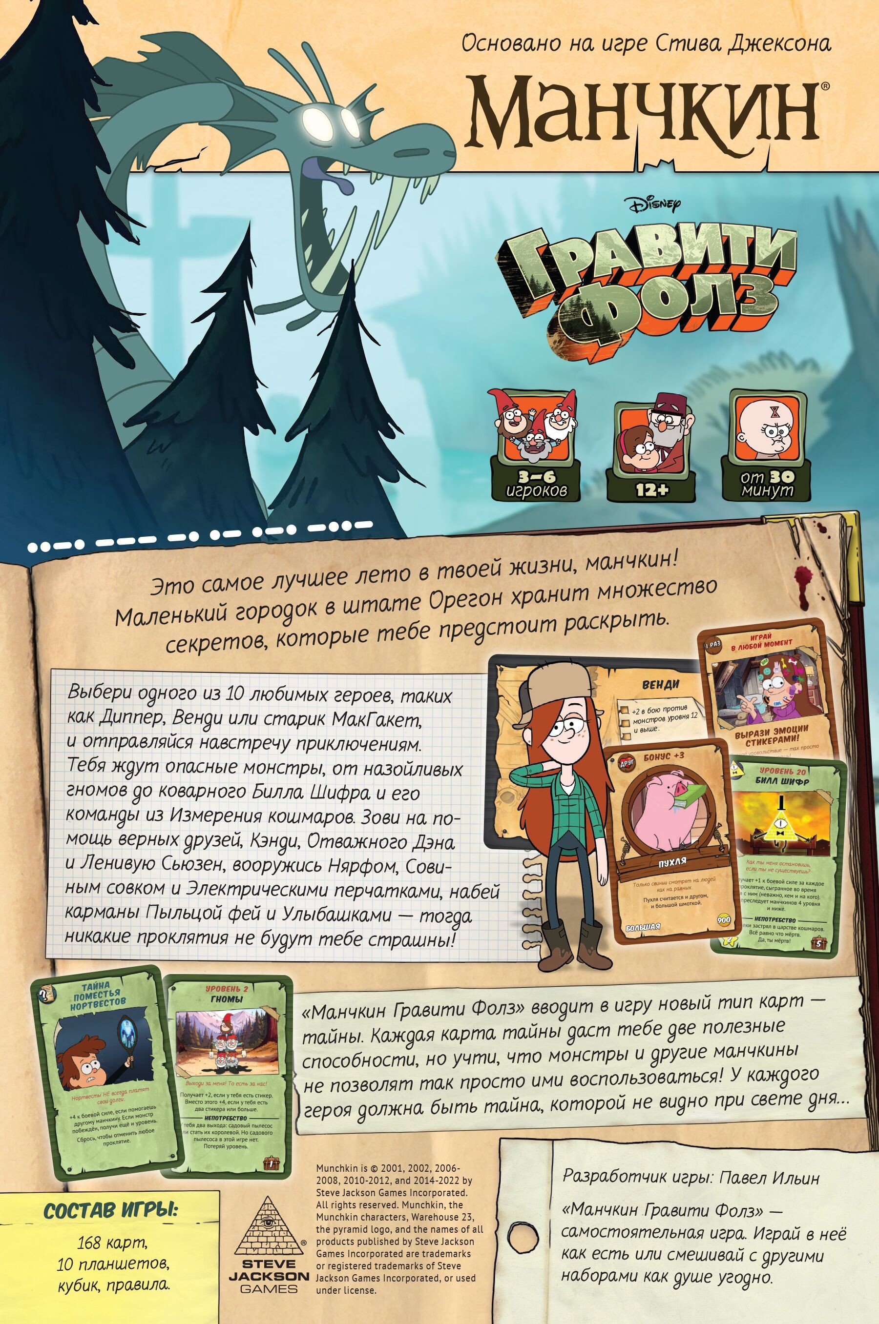 Данная игра, основанная на знаменитом мультсериале, предлагает классические правила "Манчкина" с подставами и битвами. Добывайте оружие и полезные предметы, деритесь с монстрами и постарайтесь первым получить десятый уровень. При желании, вы можете помочь другому игроку, либо замедлить его, стараясь вырвать преимущество. Выбрав одного из полюбившихся героев, игроки получат новые карты - тайны, дающие полезные способности. Но воспользоваться этим бонусом будет не так уж просто!
