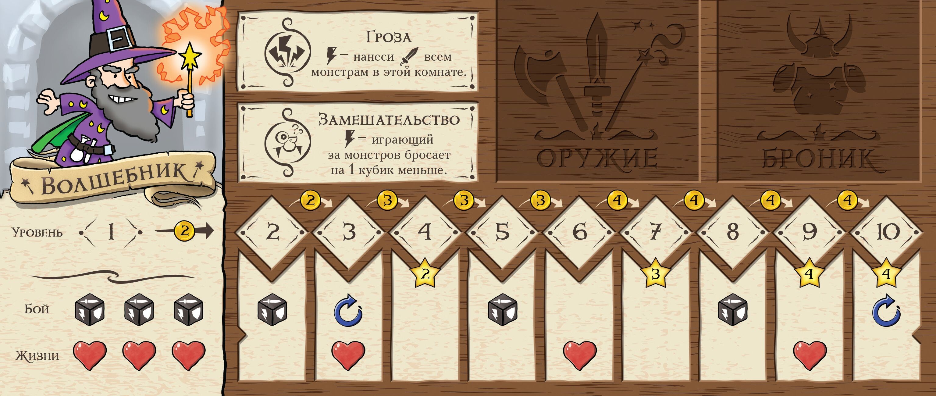 Перемещайте пластиковые фигурки персонажей по комнатам, боритесь с монстрами с помощью кубиков, замедляйте соперников и станьте лучшим в этом подземелье!