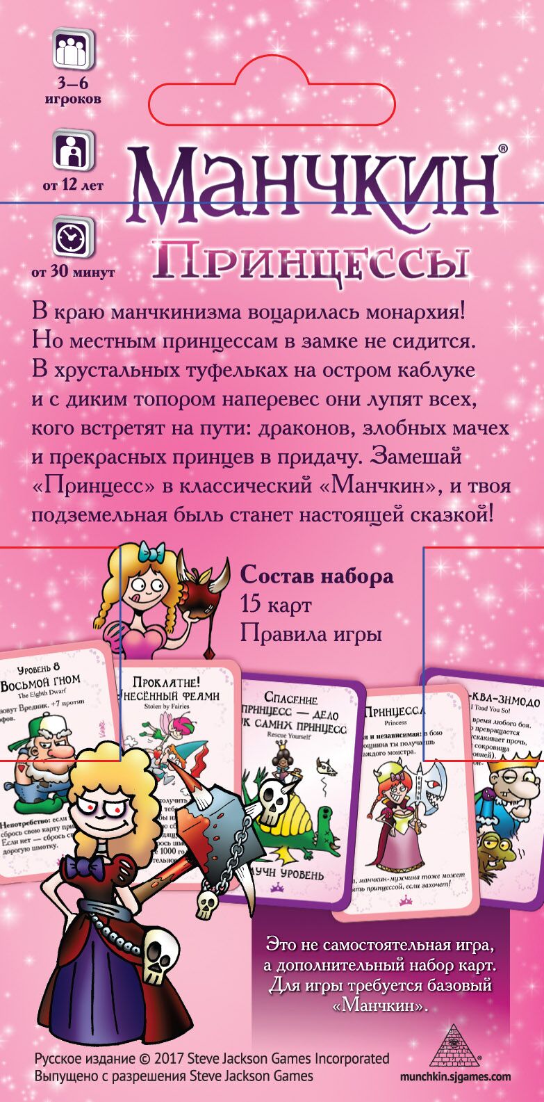 Данное тематическое дополнение вносит в "Манчкин" новых монстров, шмоток, и, конечно же, Принцесс. В бою без использования помощников они получают бонус, и при этом не считаются ни расой, ни классом. Таким образом, принцессой может стать кто угодно! Добывайте шмотки, бейте монстров, подставляйте соперников и победите в гонке за десятый уровень!