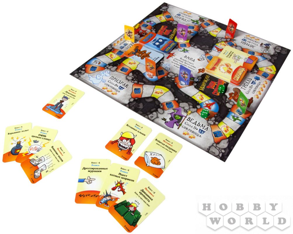 Юные приключенцы, собирайтесь перед входом в подземелье, пора выявить самого смелого героя! В данной версии знаменитой игры "Манчкин" игроки поборются за обладание манящими сокровищами, покоящимися в заброшенных пещерах, полных монстров. Красочные игровые элементы привлекут детей, а простые правила помогут погрузиться в игру на долгое время. Перемещаясь по игровому полю с помощью кубика, участники смогут добыть себе оружие и артефакты, побороться с монстрами и помочь друг другу в случае необходимости. Победитель, впрочем, будет только один, - герой, набравший наибольшее количество сокровищ. Так что не теряйте времени, хватайте меч и вперед, бороться за победу!
