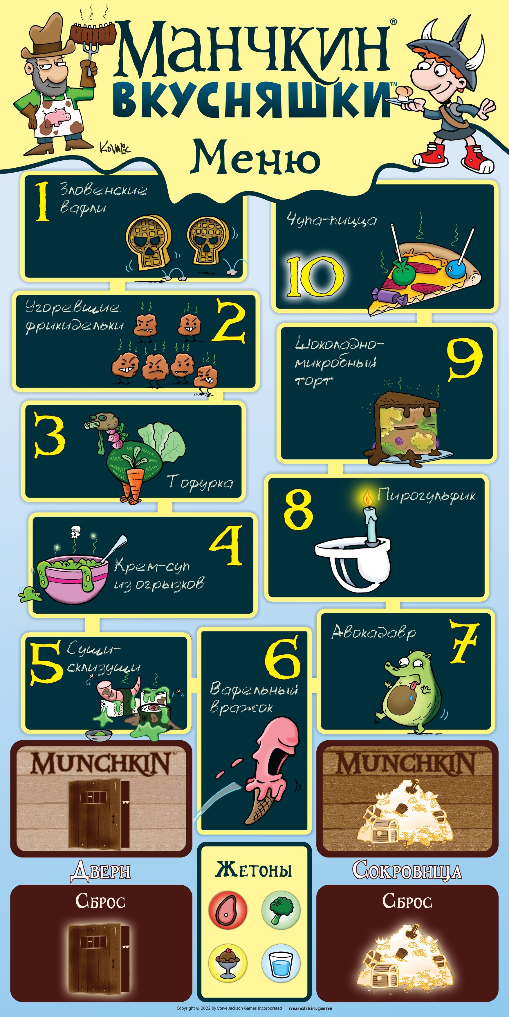 Как и прежде, игрокам с помощью карт предстоит бороться с монстрами, добывать себе снаряжение и артефакты, а также подставлять других участников и стараться первым получить десятый уровень. Только теперь атмосфера сатирического пародийного фэнтези разбавляется кулинарией и всем, что с ней связано. Монстры в данном выпуске это ожившая злая еда, способности имеют названия продуктов, и даже некоторые оружия относятся описанием и характеристиками к кухне.