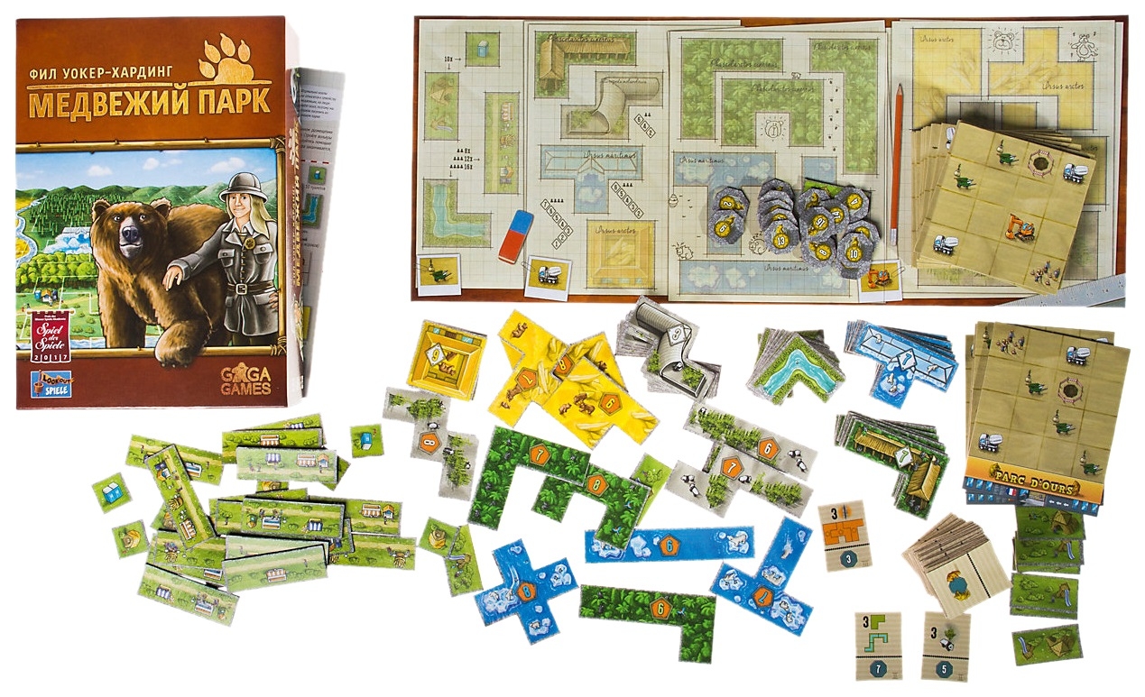 Пришло время посоревноваться в увлекательной головоломке! В данной настольной игре каждый участник получит под свой контроль небольшой участок поля, на котором ему предстоит строить медвежьи вольеры разной формы. Помните и про прихоти посетителей - для них можно построить, к примеру, кафе. Игровой процесс предполагает соперничество и быстрый расчет, напоминая знаменитый "тетрис". Закрывая клетки поля с определенными изображениями, игроки получают плитки из центра стола, которые могут стать неплохим подспорьем для победы. За полную застройку определенных участков вы сможете получить себе золотых медведей, необходимых для победы.
