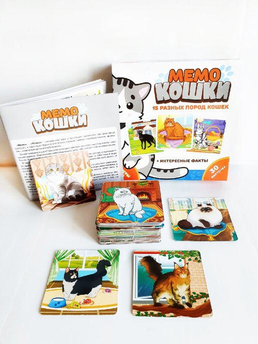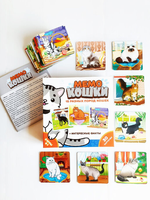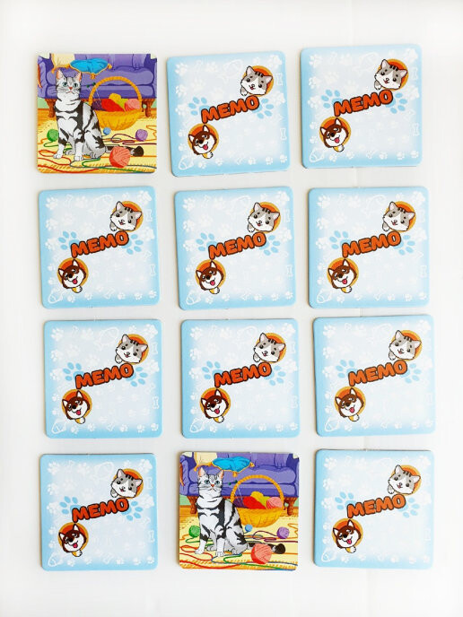 Нет, у вас не двоится в глазах, просто данная игра предлагает вам посоревноваться в наборе парных карт с кошками. Все карты выкладываются взакрытую, после чего участники по очереди открывают две любых карты. Если им повезло, и иллюстрации совпадают, игроки получают карты себе и становятся ближе к победе. Если же рисунки отличаются, их нужно будет положить обратно взакрытую. Таким образом, игра развивает внимательность и память, а победит в ней тот, кто соберет больше парных кошек.