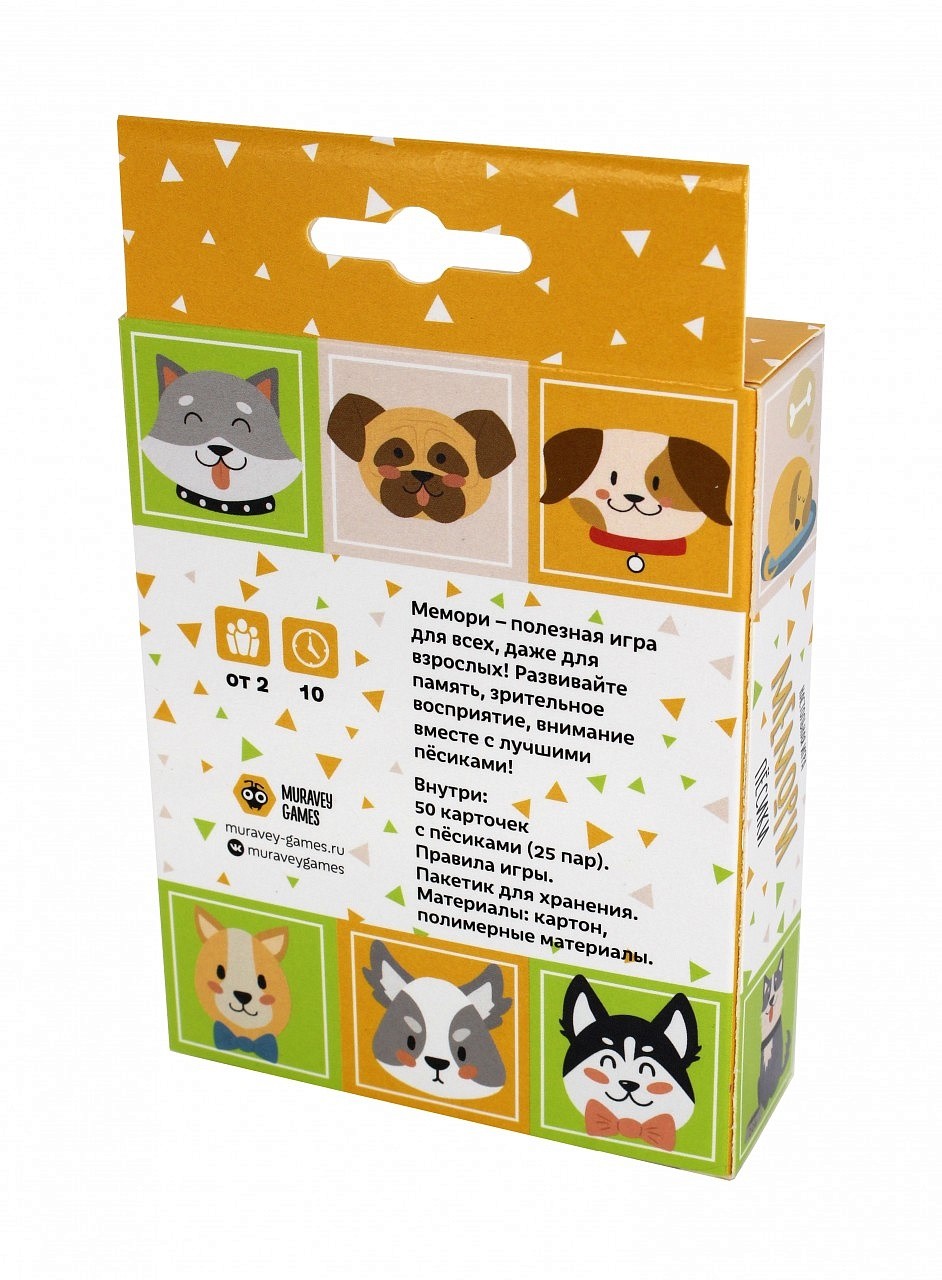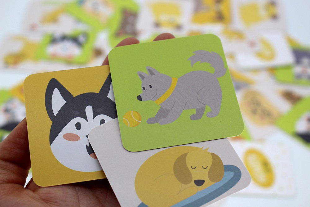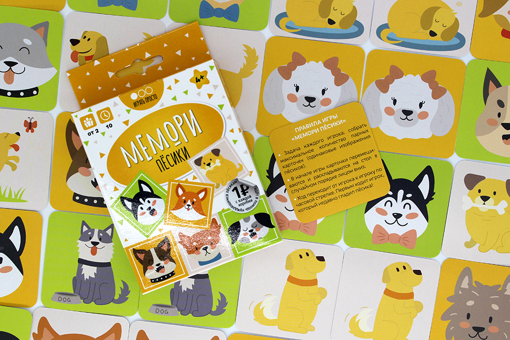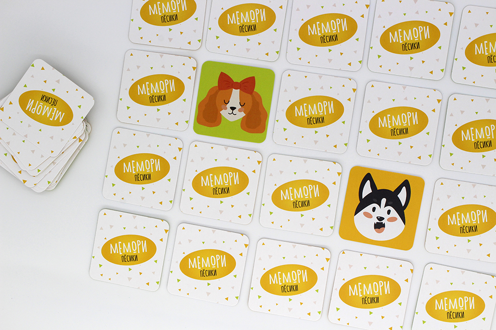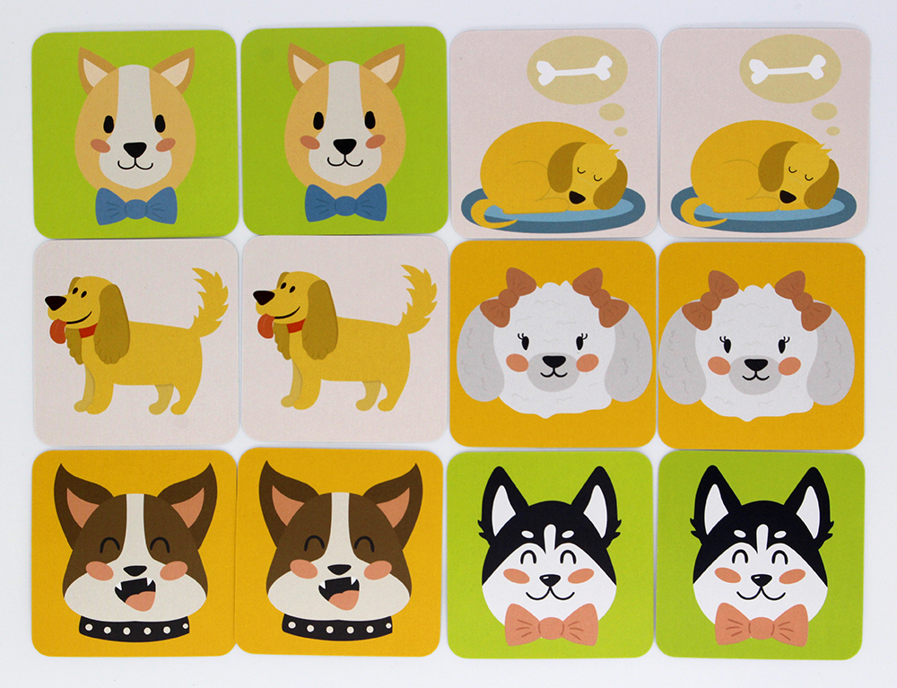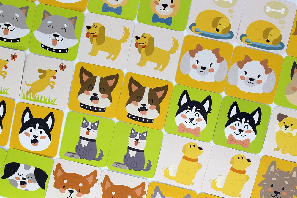 Перед вами пятьдесят карточек с парными изображениями разнообразных песиков. Участникам предстоит по очереди брать две карты из разложенных в закрытую на столе и смотреть, что на них нарисовано. Если рисунки совпадают, игрок получит парные карты себе. Но если иллюстрации различаются, карты надо будет вернуть на свое место. Таким образом, тренируя память и внимательность, участники поборются за сбор парных карт.