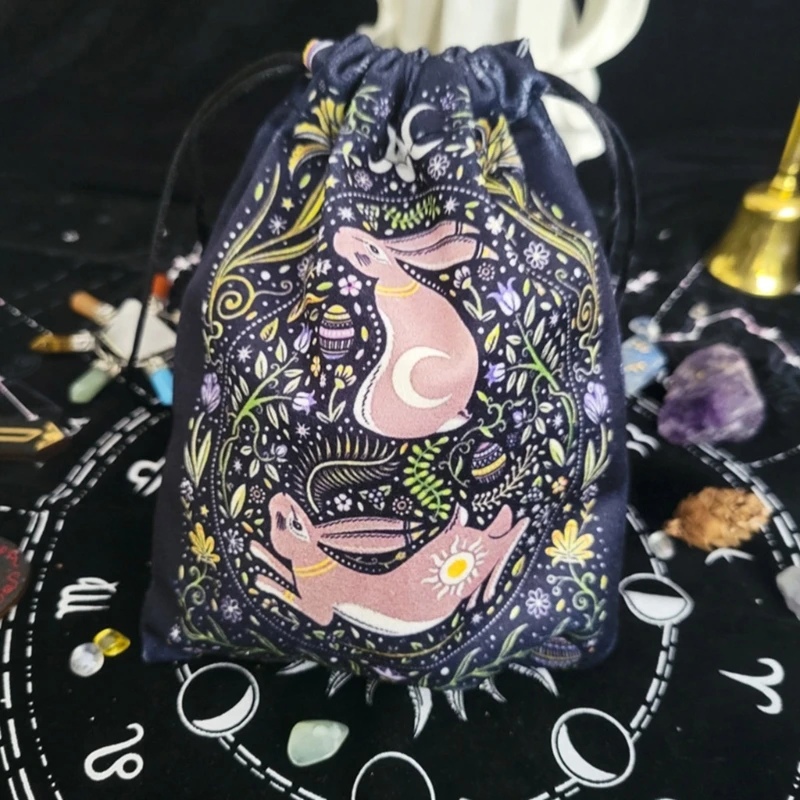 Мешочек с бархатной текстурой подойдет для хранения и переноски колоды карт таро. Данный аксессуар удобно и быстро закрывается, изготовлен в черном цвете и имеет красивейшую иллюстрацию со множеством различных деталей.