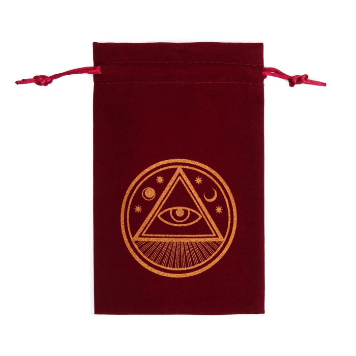 Плотный и качественный мешочек подойдет для хранения различных рун и карт таро. Мешочек имеет красный цвет, а на внешней стороне у данного варианта нарисовано всевидящее око.