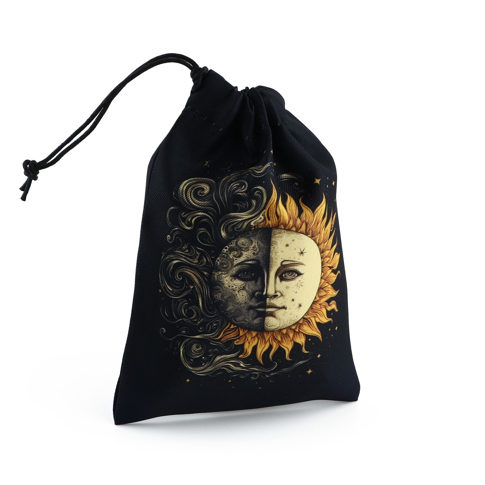 Данный аксессуар подходит для хранения и переноски карт. Имея красочную иллюстрацию на внешней стороне, мешочек представлен в черном цвете, предназначен для колоды карт таро и легко закрывается с помощью веревки.