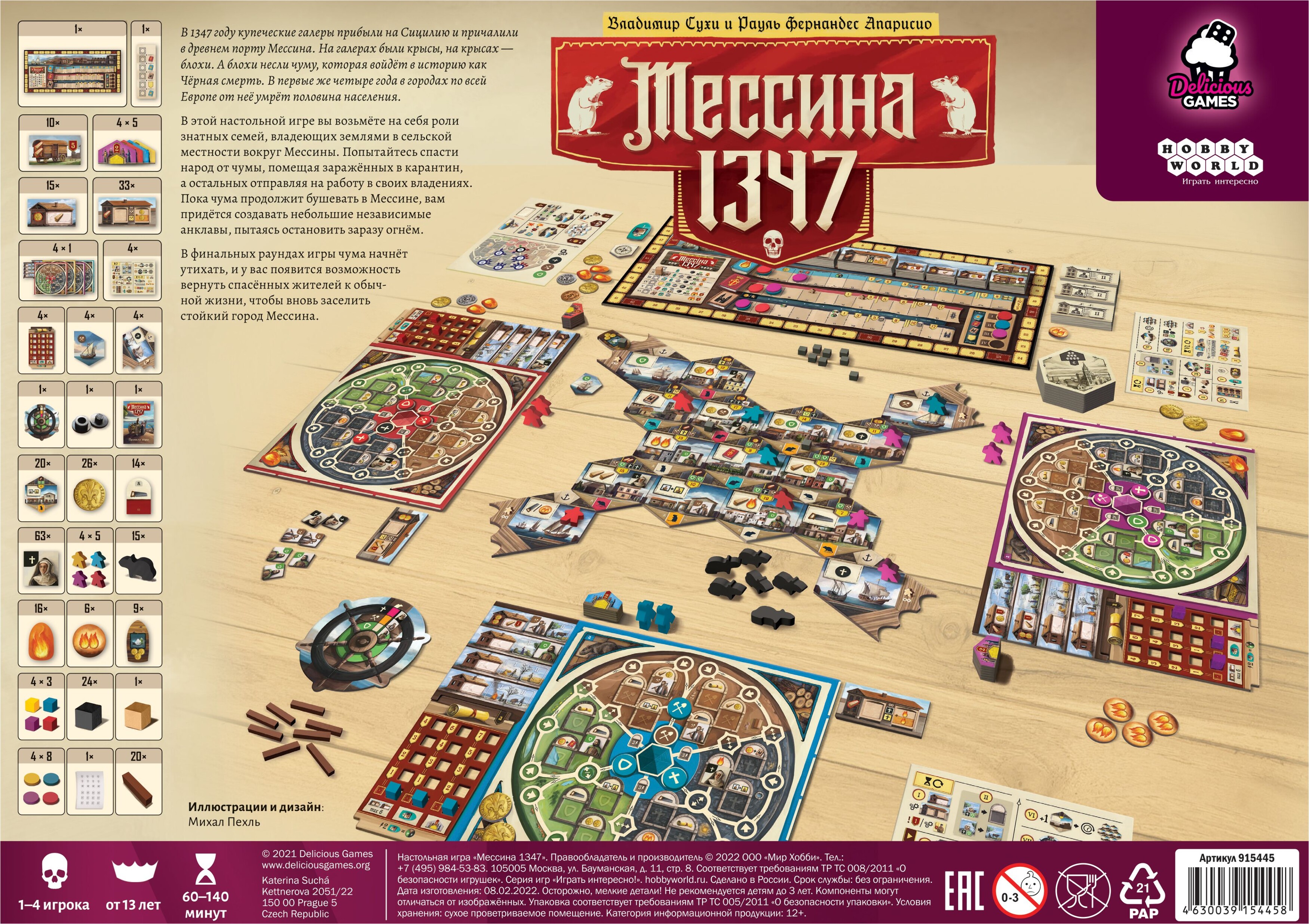 Под крышкой коробки вас ждет увлекательная стратегия. Чума бесчинствует в городе, а потому вам придется двинуться в пригород. Спасайте жителей от болезни, вовремя помещая их в карантин, а как только угроза уйдет, старайтесь занять покинутые районы города и получить преимущество. Заселяйте их жителями, получайте одобрение народа, зарабатывайте полезные ресурсы и продолжайте благое дело. По окончании шести раундов, вас ждет подсчет победных очков. Берегитесь чумных крыс - их наличие у вас неприятно скажется на конечном результате. Верните былое величие прекрасному городу и спасите всех, кого можете!