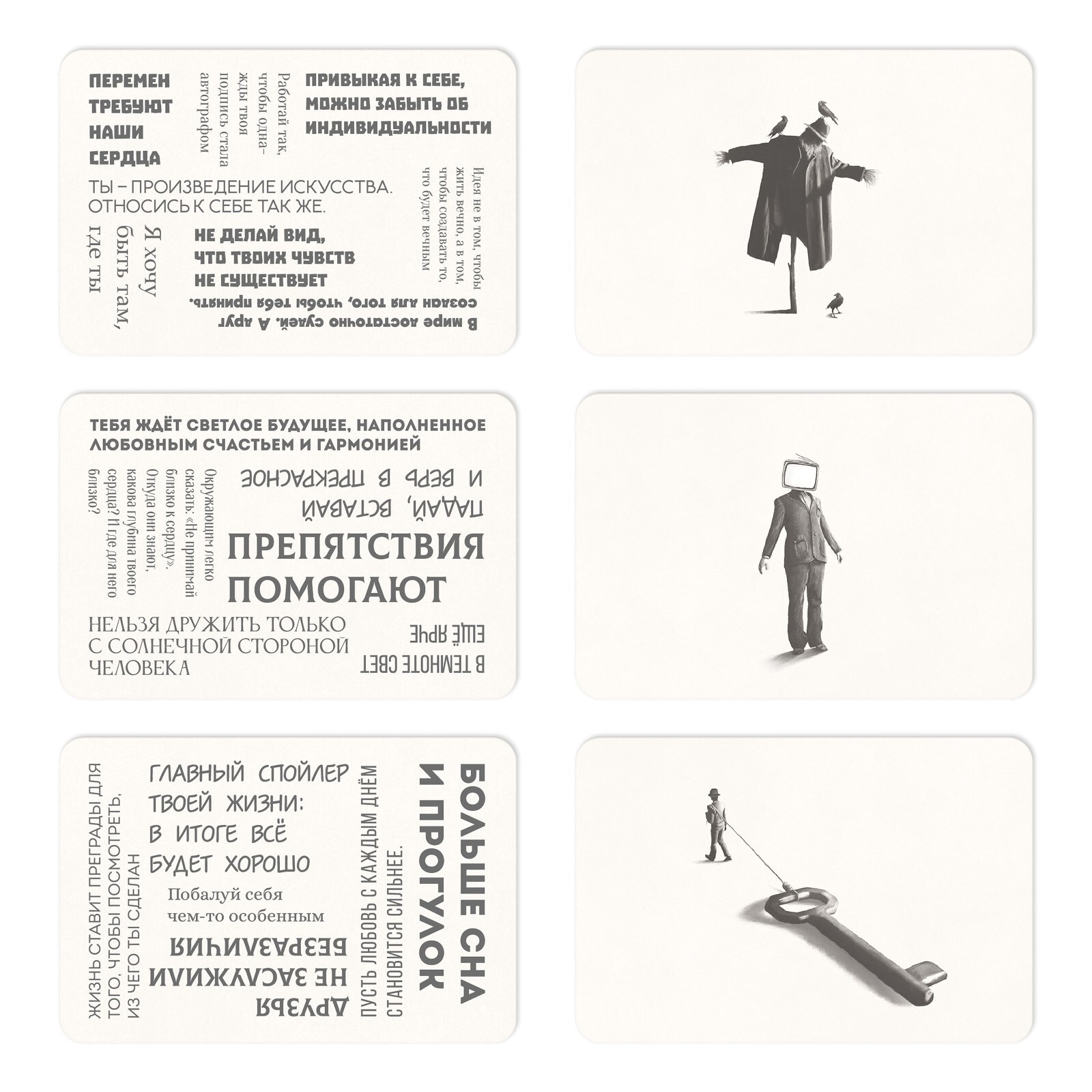 Ассоциативные карты с различными метафорическими иллюстрациями помогут вам разобраться в себе и найти ответы на вопросы, которые вас давно тревожат. В коробке вы найдете удобную инструкцию по раскладу. Данная версия компактна и подойдет для того, чтобы взять ее в дорогу.