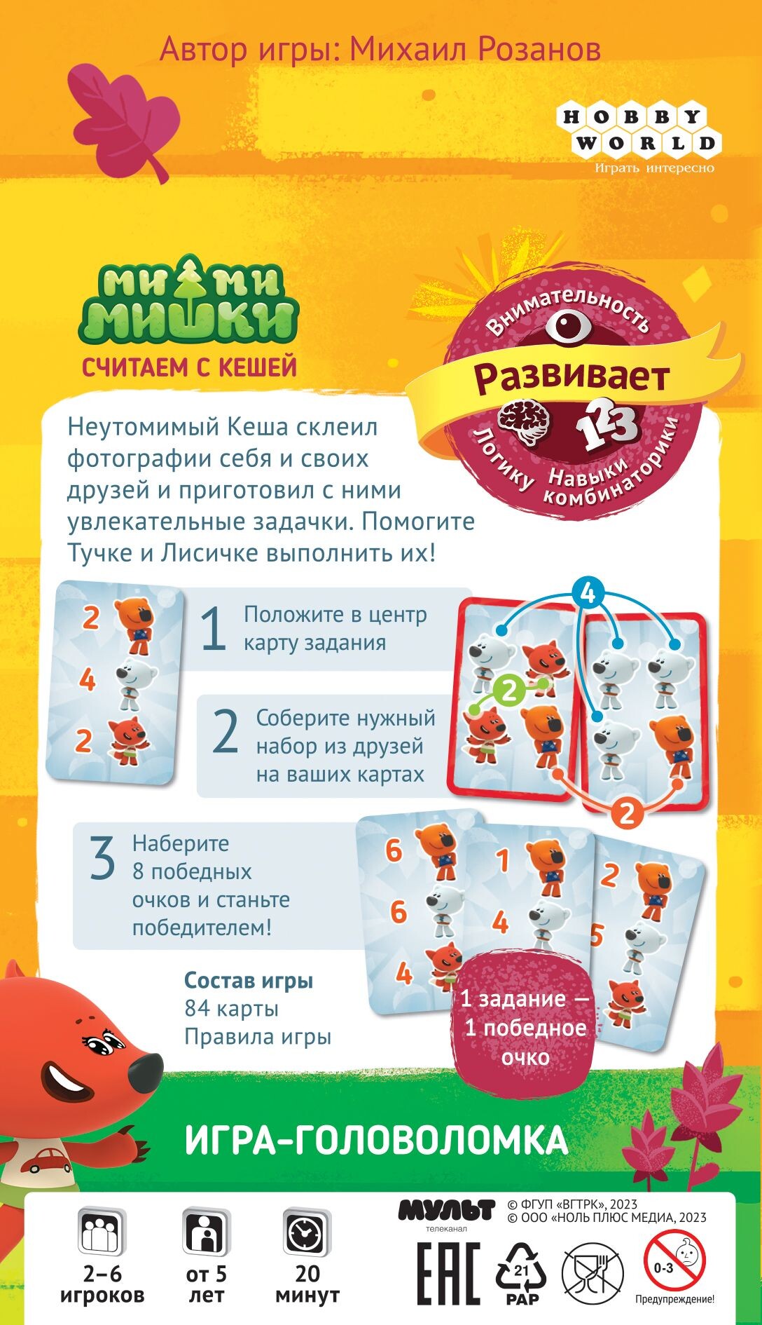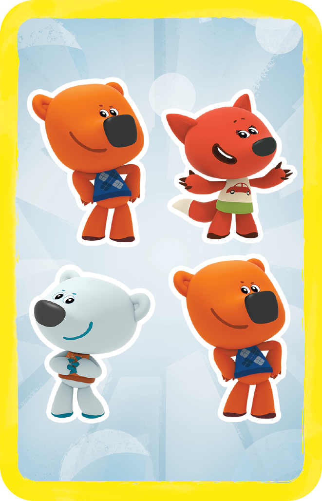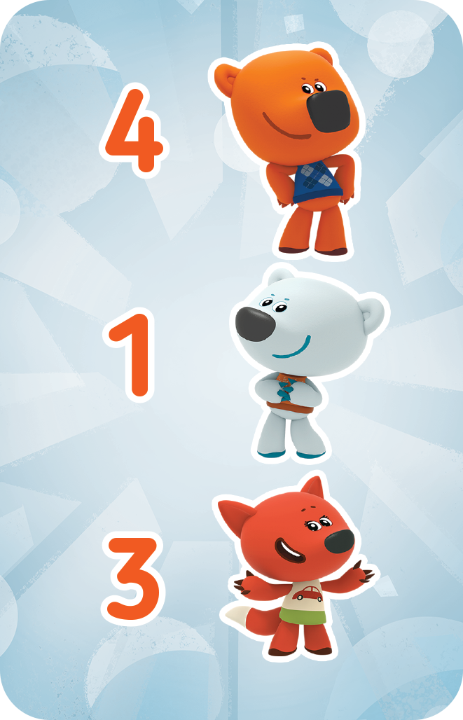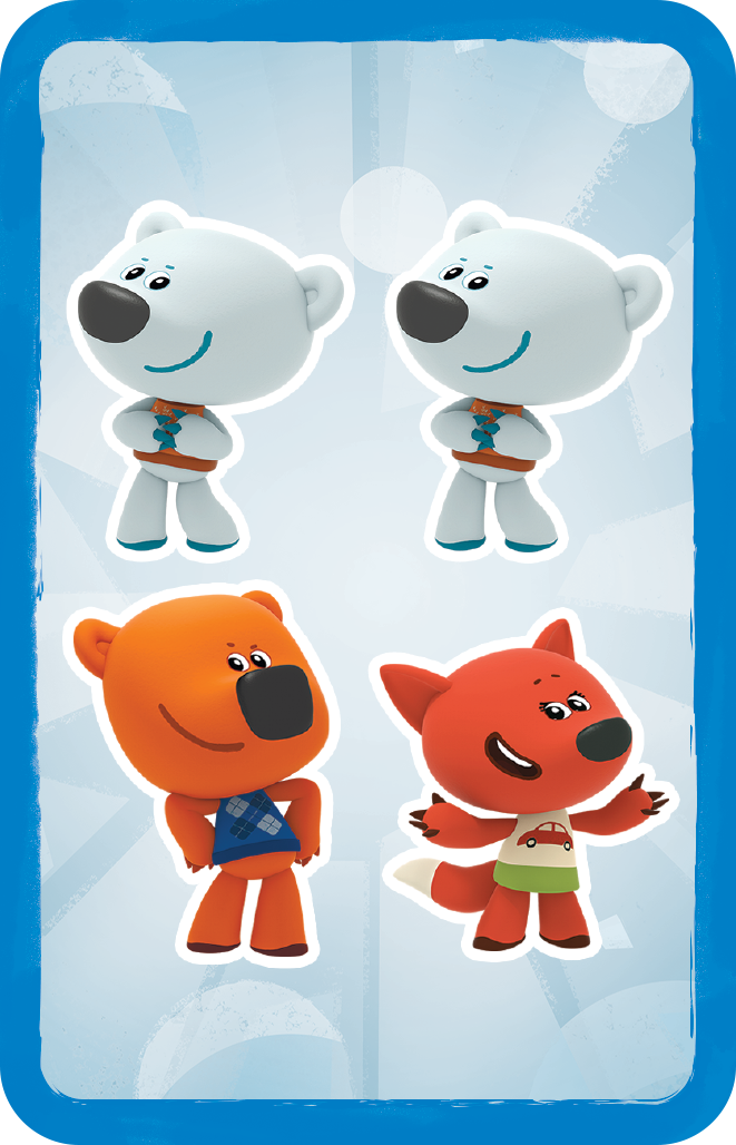 Веселые животные решили научиться счету, и вы можете им в этом помочь! Выложите карты с разными животными на стол и откройте карту задания, на которой указано, сколько вам нужно найти мишек и их друзей. Быстро смотрите на все карты и старайтесь найти нужное количество. Кто заметил первым, тот станет на шаг ближе к победе! Разложите все карты на столе и покажите остальным, кто самый быстрый!