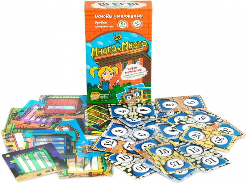Данная игра познакомит детей с этой частью математики, наглядно демонстрируя процесс и превращая обучение в веселое соревнование. Внутри коробки вы найдете карточки с изображениями домов. Окна в домах прозрачные, разделены на вертикальные и горизонтальные секции, поэтому накладывая карты друг на друга можно высчитать количество окон. Несколько вариантов правил позволят настроить сложность и посоревноваться в выполнении заданий на умножение. Кто первым выполнит три задания, тот и станет победителем!
