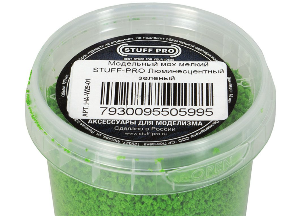 Данный аксессуар универсален и предназначен для украшения ваших коллажей и диорам. Модельный мох придаст модели дополнительной детальности и аутентичности. Данный вариант обладает и дополнительным свойством - он мягко светится в темноте.