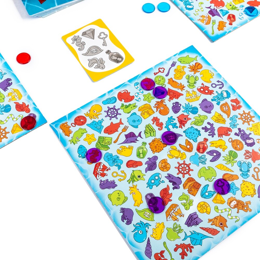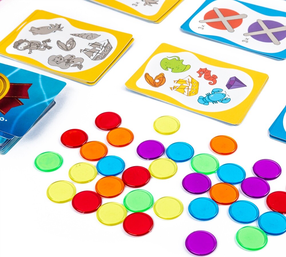 6 двусторонних игровых полей36 прозрачных жетонов 6 цветов65 карточек с заданиямиПравила игрыРазмер карт: 63x89 мм
