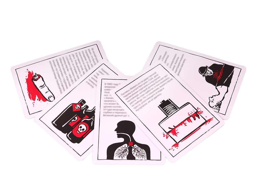 В данной игре вас ждут карточки с различными трагичными и абсурдными историями. Один из игроков зачитывает содержимое карты, а остальным участникам предстоит понять, что же на самом деле произошло. В свой ход вы можете задавать наводящие вопросы, но их стоит продумывать, ведь все, что вы можете услышать в ответ - это "да", либо "нет". Игрок, который первым задаст правильный вопрос и докопается до истины, получит победные очки.