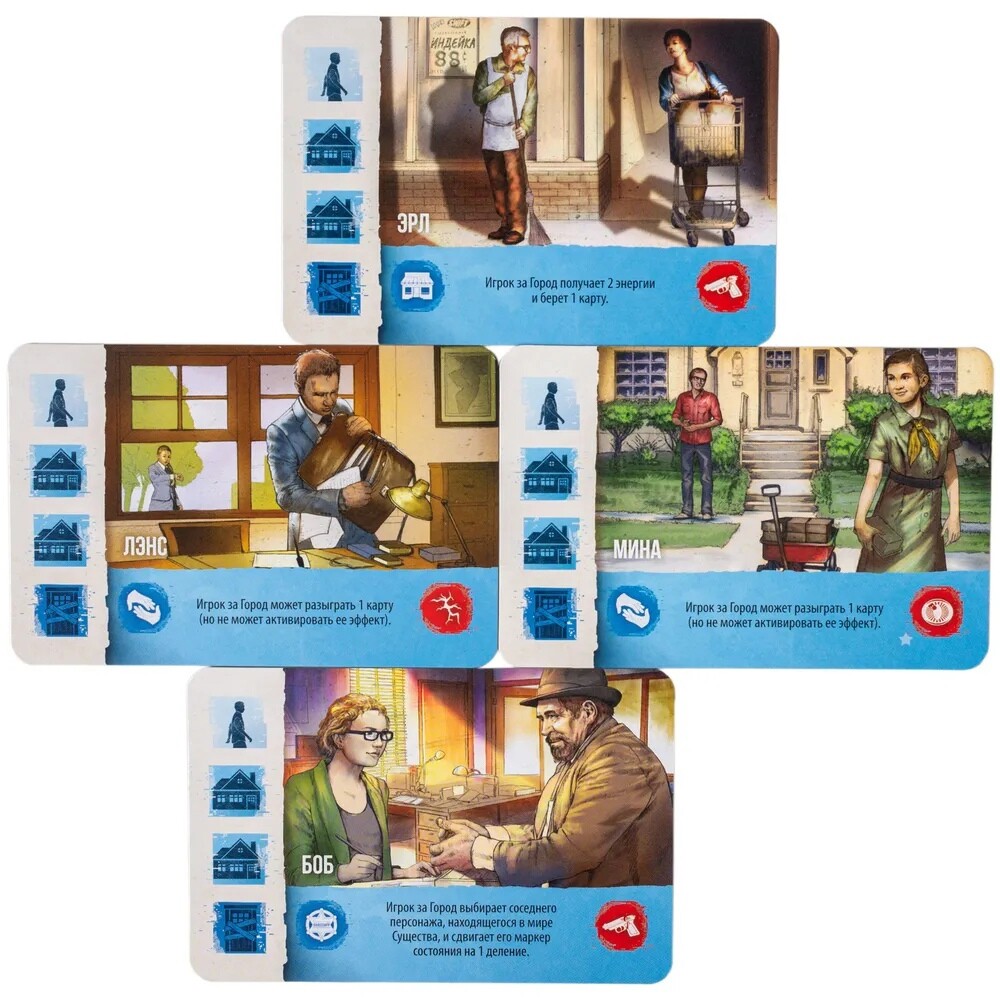 В данной дуэльной игре участникам предстоит принять на себя две противоборствующие стороны - города и загадочного существа, стремящегося все подчинить под свой контроль. Каждый получит набор карт с уникальными возможностями и способностями. Тактика и расчет помогут вам, ведь на кону судьбы невинных. Игроки поборются за десять карт жителей, и когда трое из них будут подчинены определенной стороне, игра завершится. Если в городе останется меньше половины жителей, монстр может победить, и тогда надежды на спасение не останется...