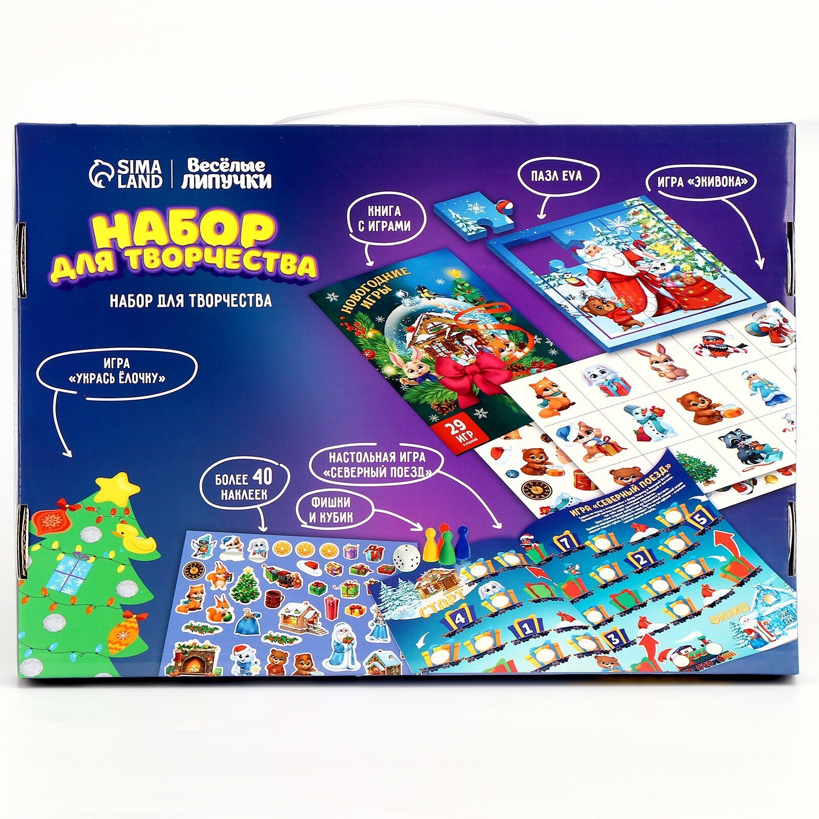 Данный набор оформлен в новогодней тематике и предложит вам множество увлекательных заданий. Игрока ждут пазл, классическая бродилка, набор новогодних наклеек с различной тематической символикой, викторина и целая книга с играми! Досуг на все новогодние праздники обеспечен!