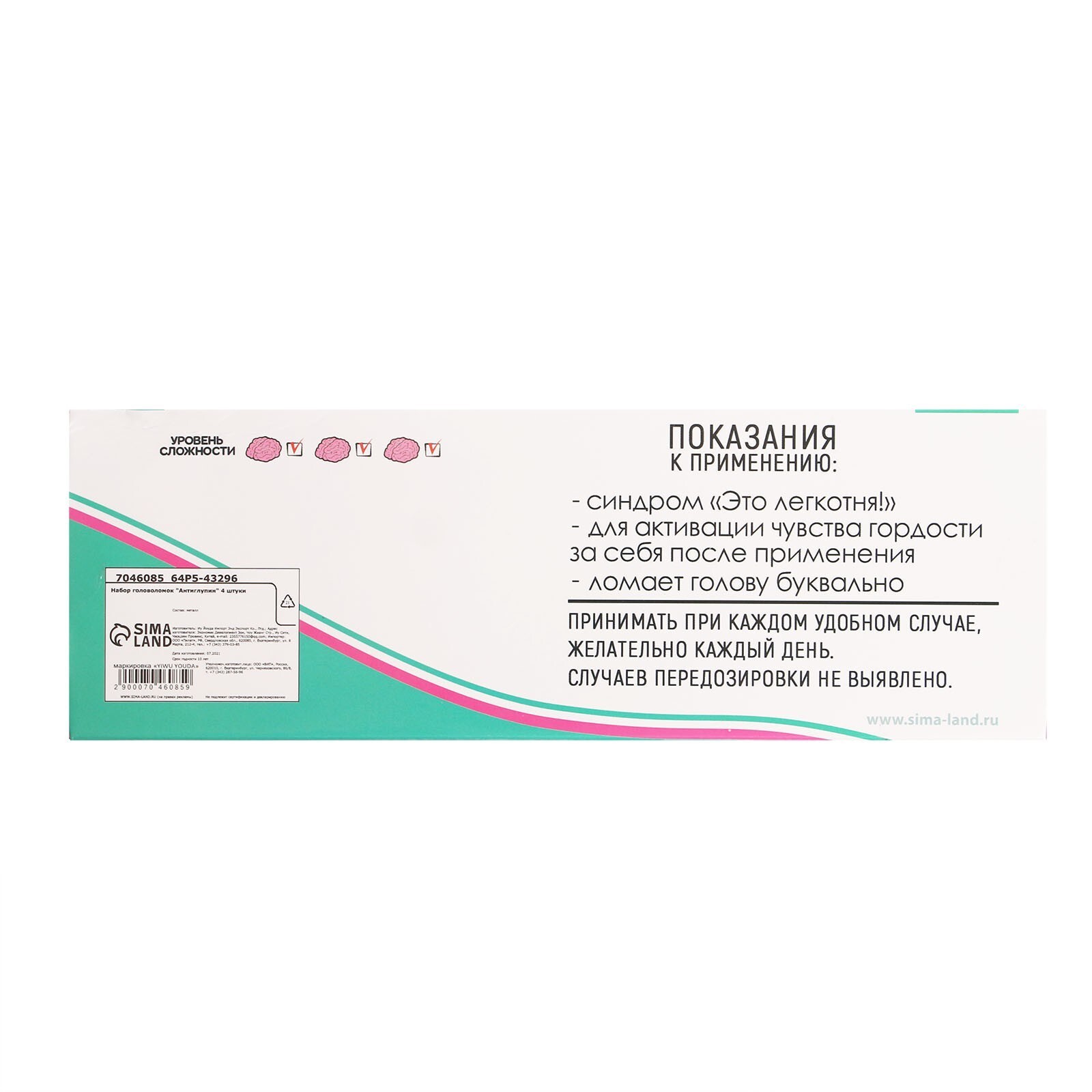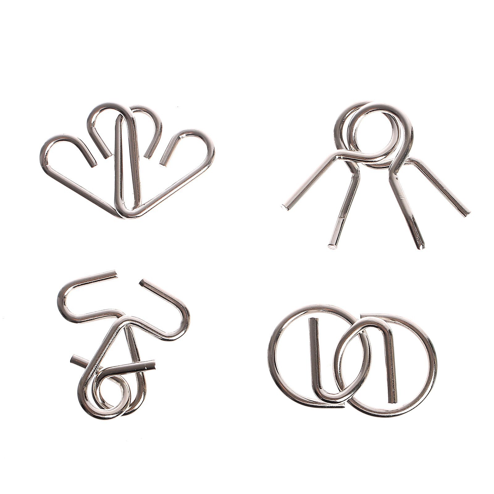 Данный набор содержит четыре металлических головоломки разной степени сложности. Попробуйте найти решение и понять, как разъединить переплетенные между собой элементы, а затем соединить их обратно. Настоящая зарядка для ума!