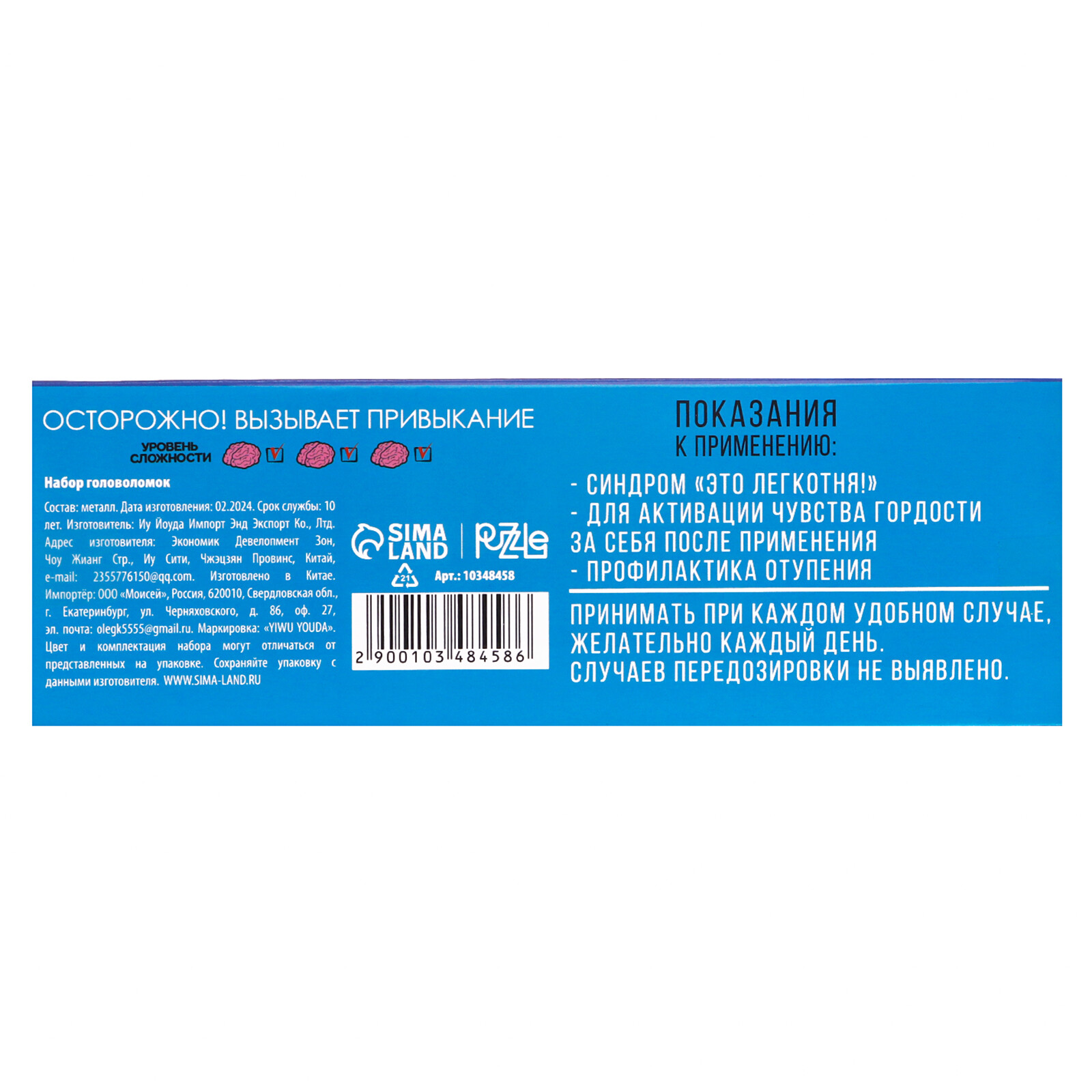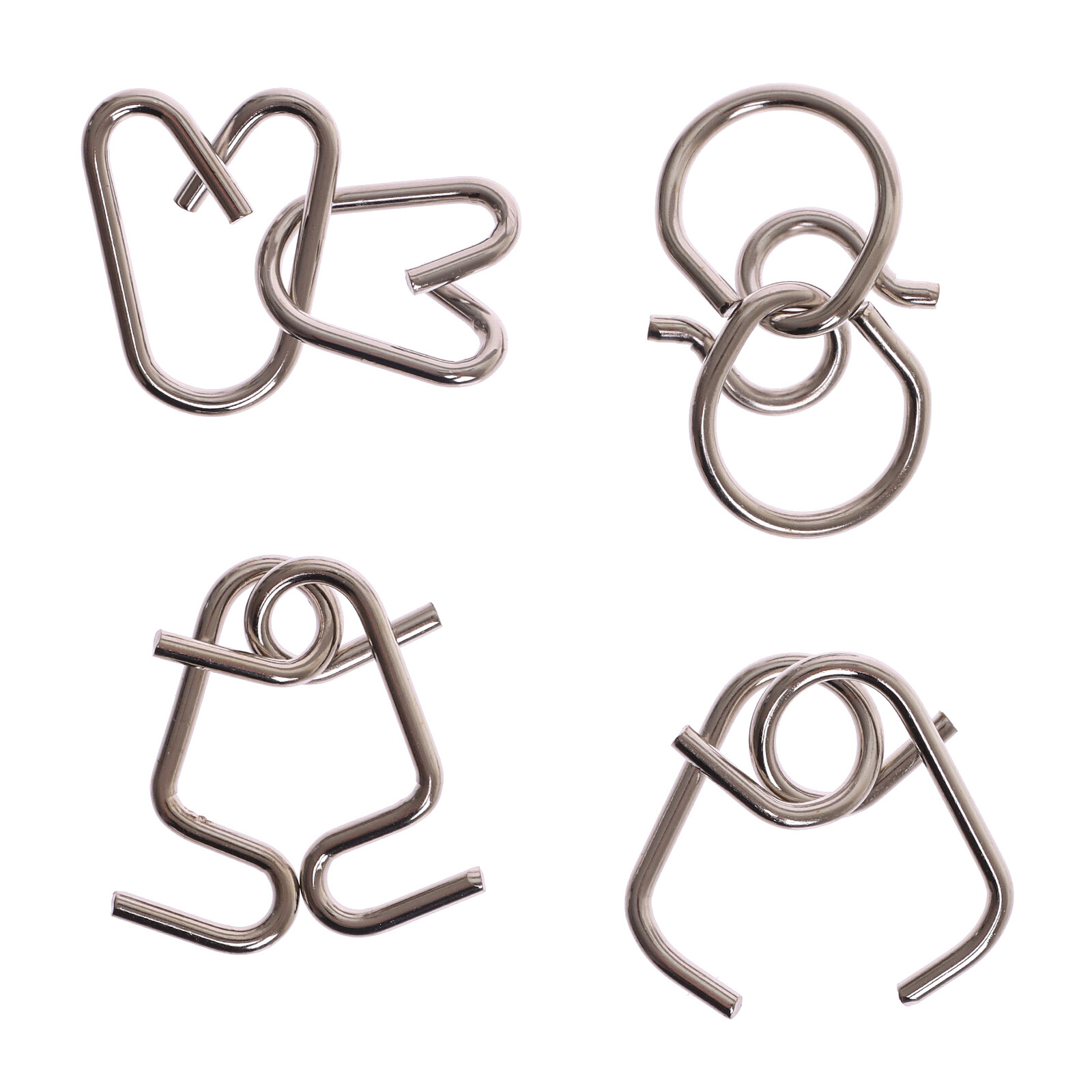 Данный набор содержит четыре металлических головоломки разного уровня сложности. Вам нужно понять, как разъединить причудливо изогнутые элементы, а затем соединить их обратно. Получится ли у вас найти решение для каждой задачи?