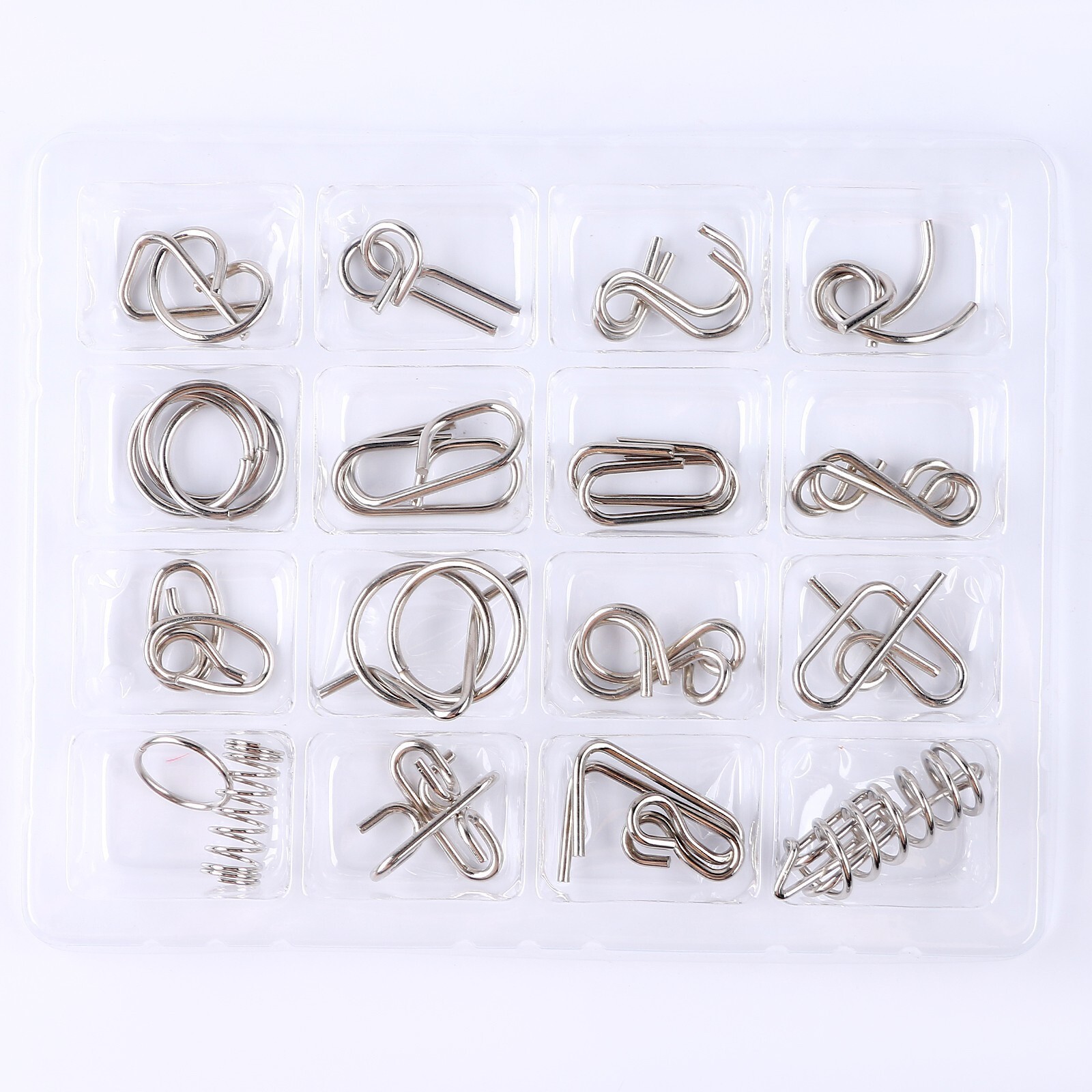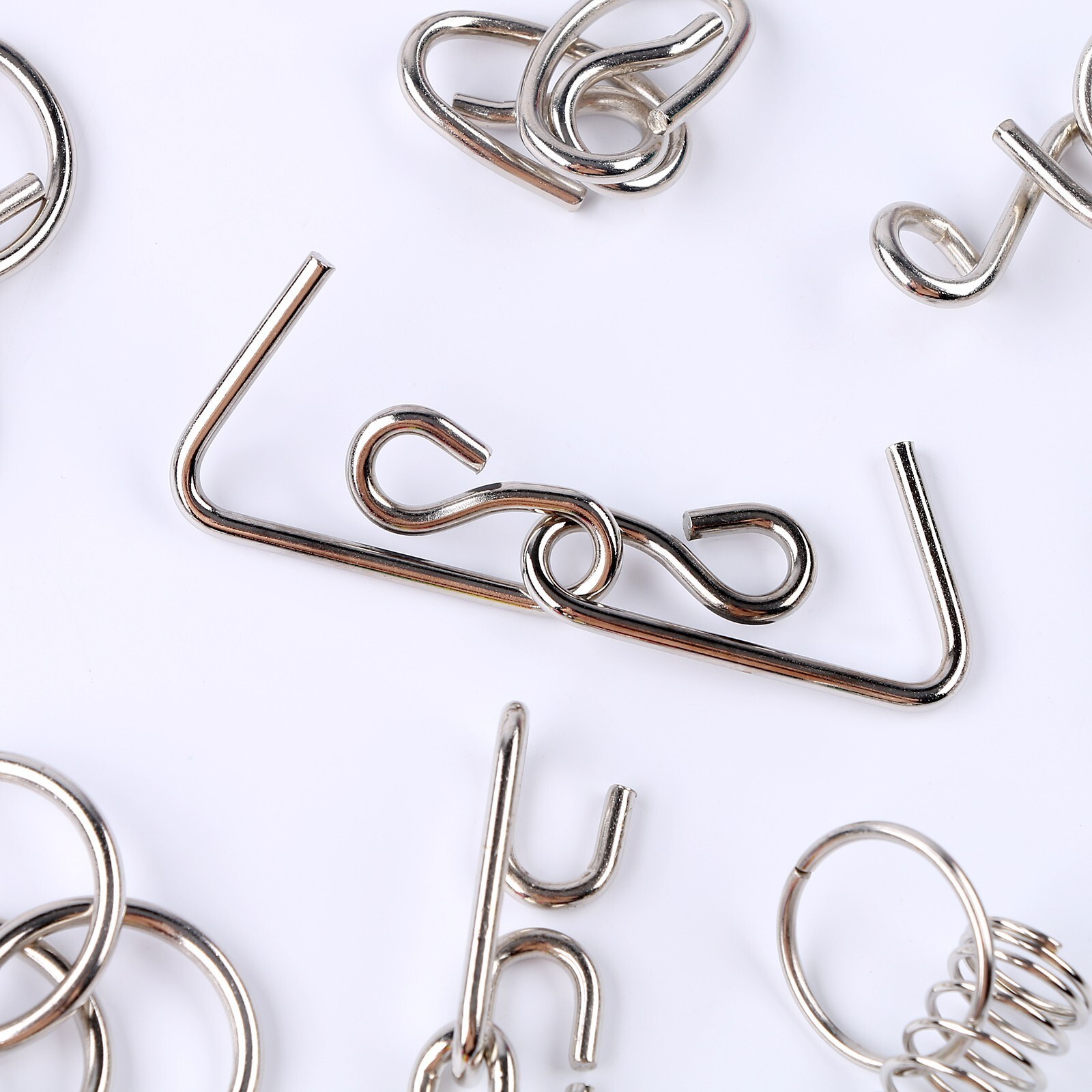 Данный набор содержит шестнадцать головоломок, изготовленных из металла. В каждой из них вам нужно догадаться, как разъединить причудливо изогнутые элементы, а затем соединить их обратно. Получится ли у вас решить все предложенные задачи?