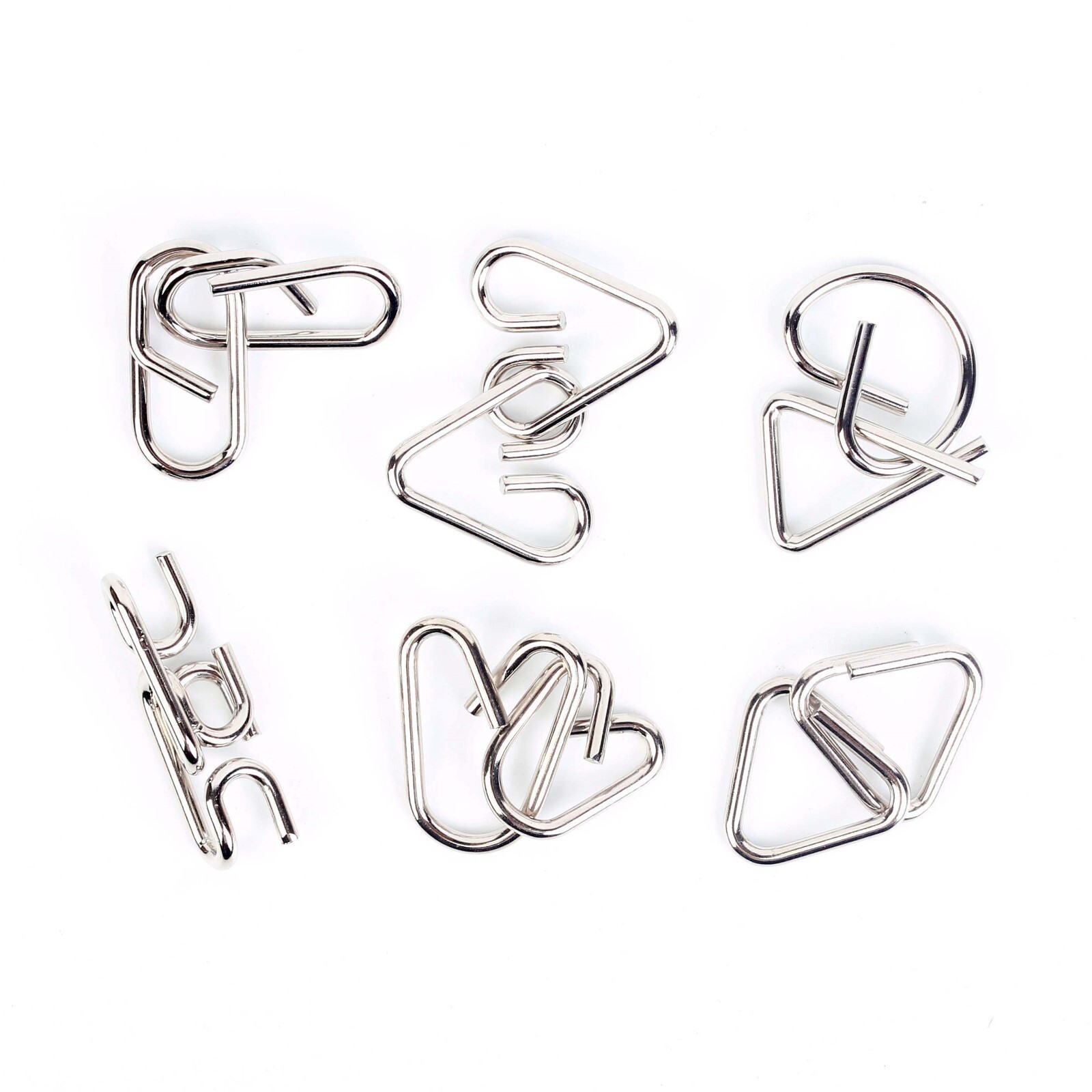 Попробуйте разгадать все головоломки! В коробке вас ждут шесть задач разного уровня сложности. Найдите способ, как разъединить металлические элементы разной формы, а затем соединить их обратно. Настоящая зарядка для ума!