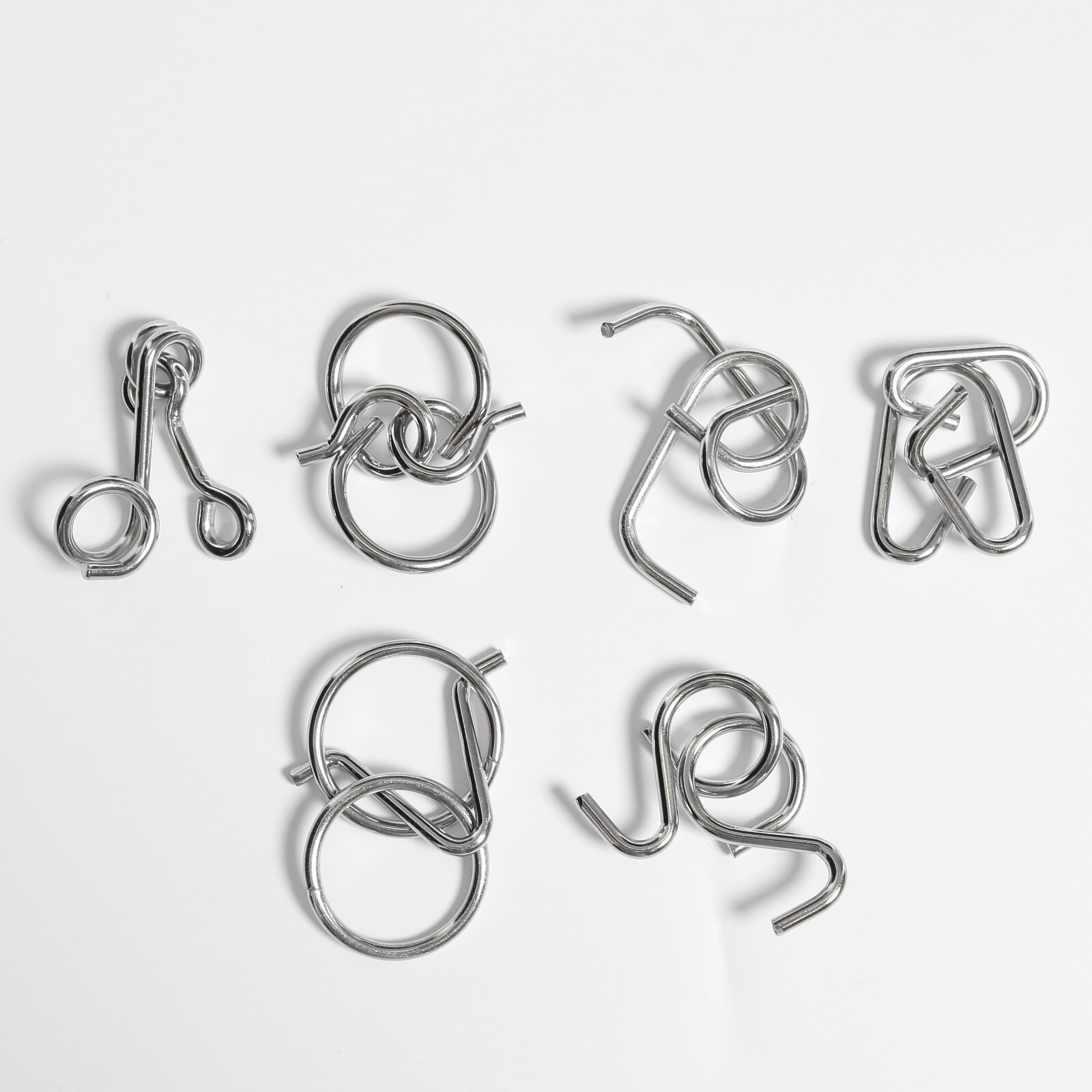 Вас ждет набор из шести головоломок, некоторые из которых могут стать серьезным испытанием. Придумайте, как разъединить металлические элементы, а затем соединить их обратно.