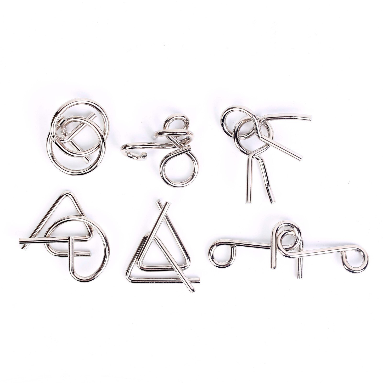Данный набор состоит из шести металлических головоломок разного уровня сложности. Придумайте, как разъединить и соединить обратно переплетенные между собой причудливо изогнутые элементы.