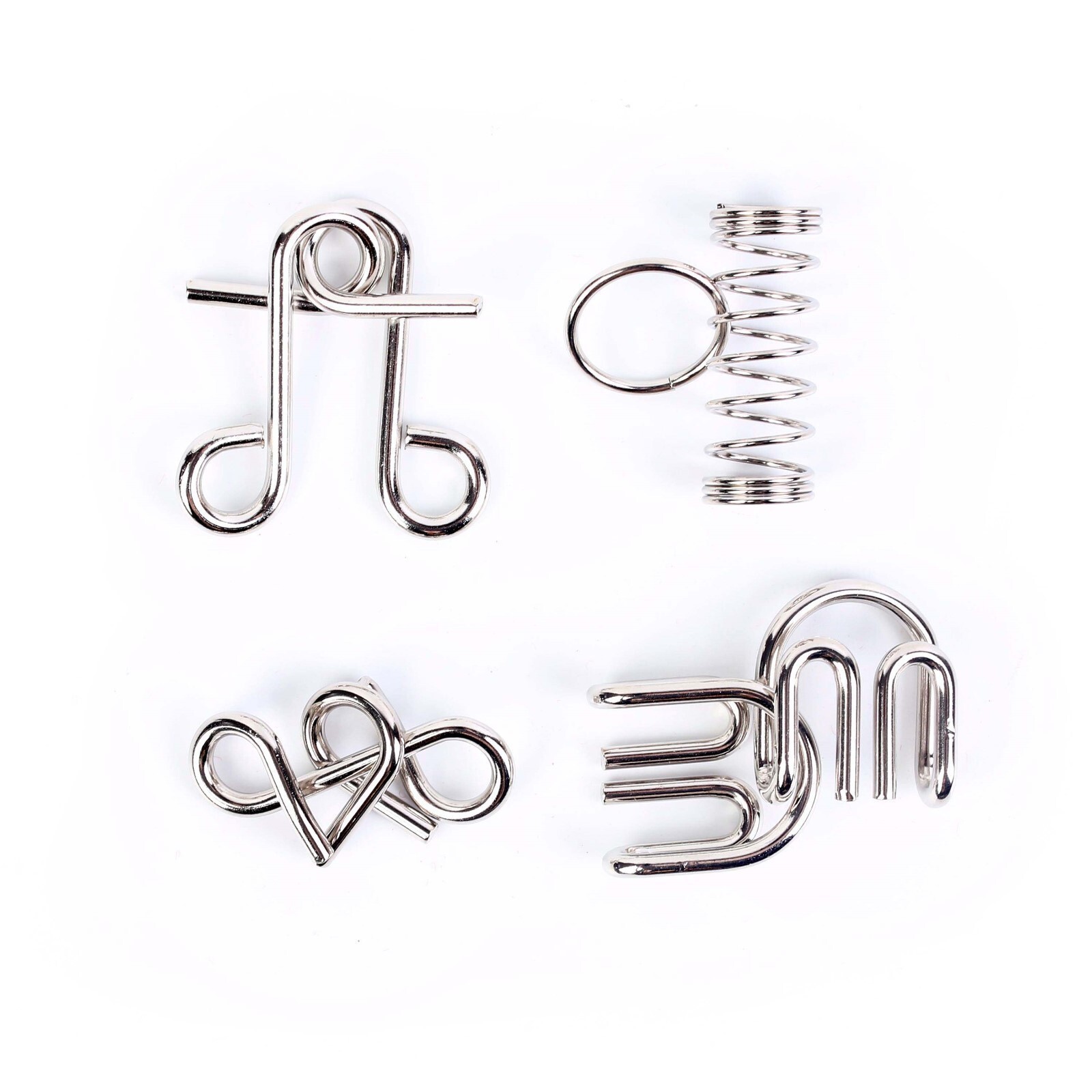 Данный набор предложит вам разгадать четыре головоломки. Элементы разной формы соединены вместе, и вам нужно придумать, как разъединить их. А потом найти способ соединить их обратно. Получится ли у вас решить все головоломки?