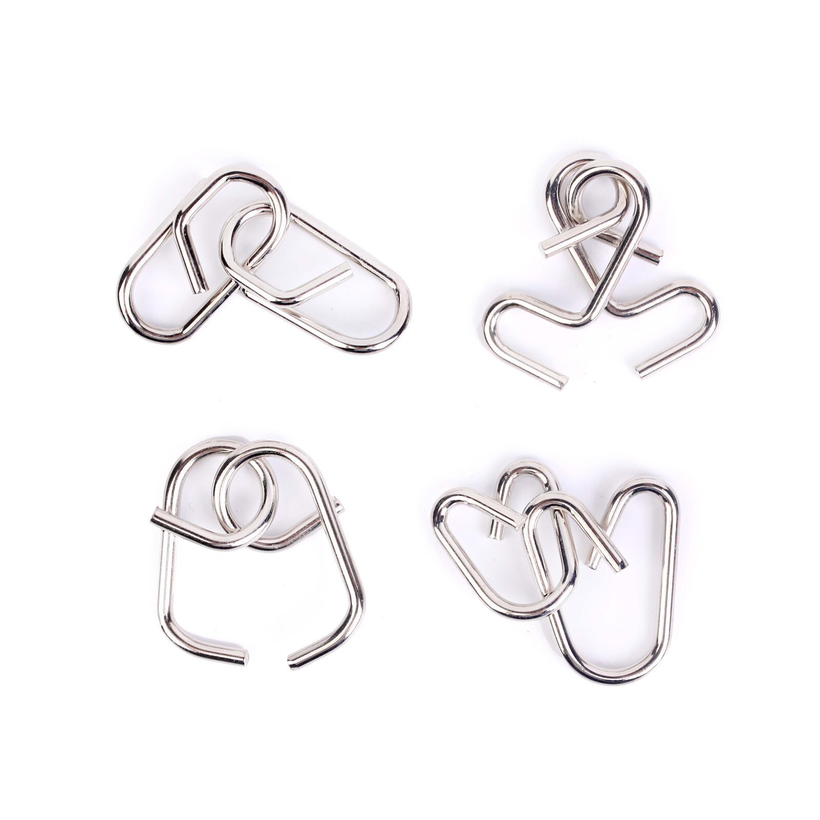 Данный набор головоломок из металла предложит вам четыре загадки, в которых нужно понять, как разъединить, а затем соединить обратно элементы необычной формы. Получится ли у вас найти решение и разгадать все?