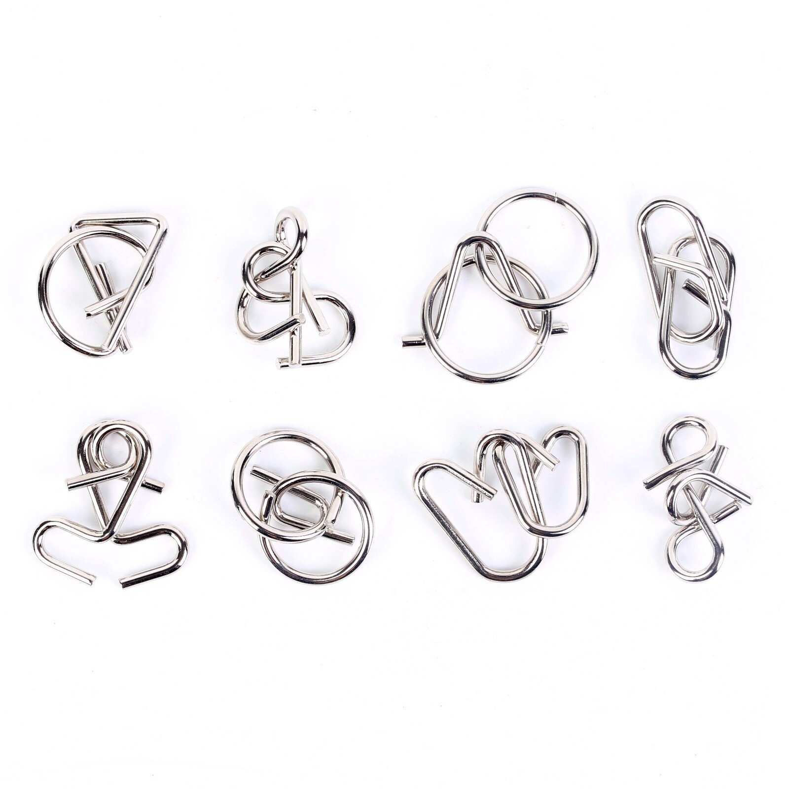 Данный набор предложит вам восемь задач, некоторые из которых могут стать настоящим вызовом. Придумайте, как разъединить соединенные металлические элементы, а затем собрать их обратно. Проверьте свою смекалку!