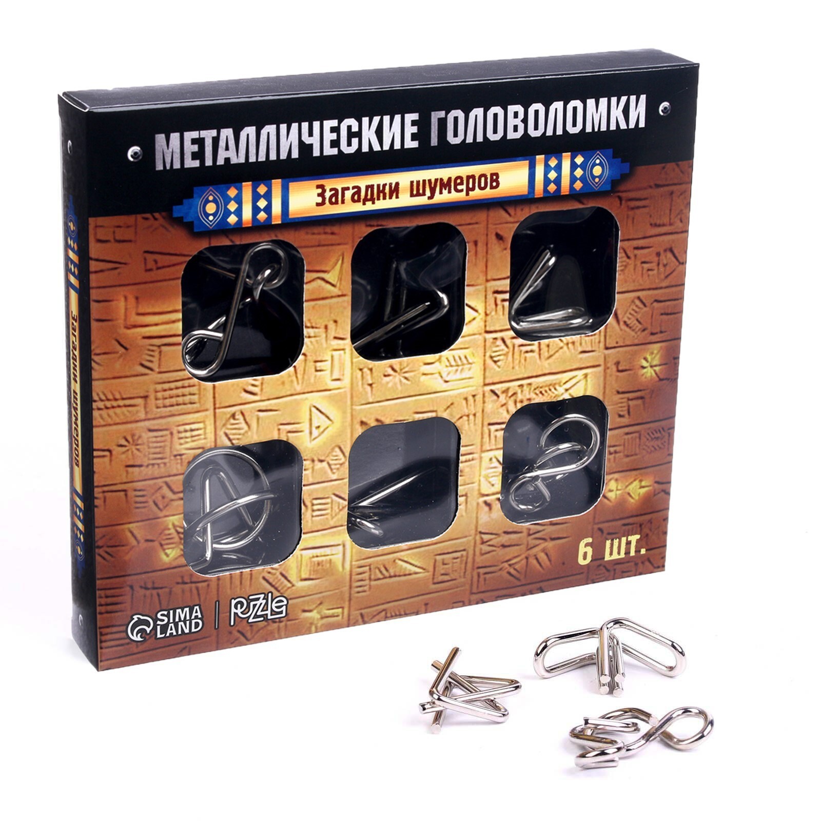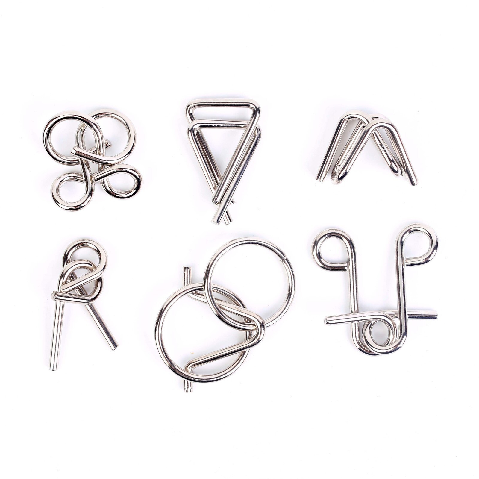 Набор головоломок состоит из шести задач, изготовленных из металла. Вам нужно найти решение и понять, как разъединить переплетенные между собой причудливо изогнутые детали, а затем собрать их обратно. Получится ли у вас найти решение?
