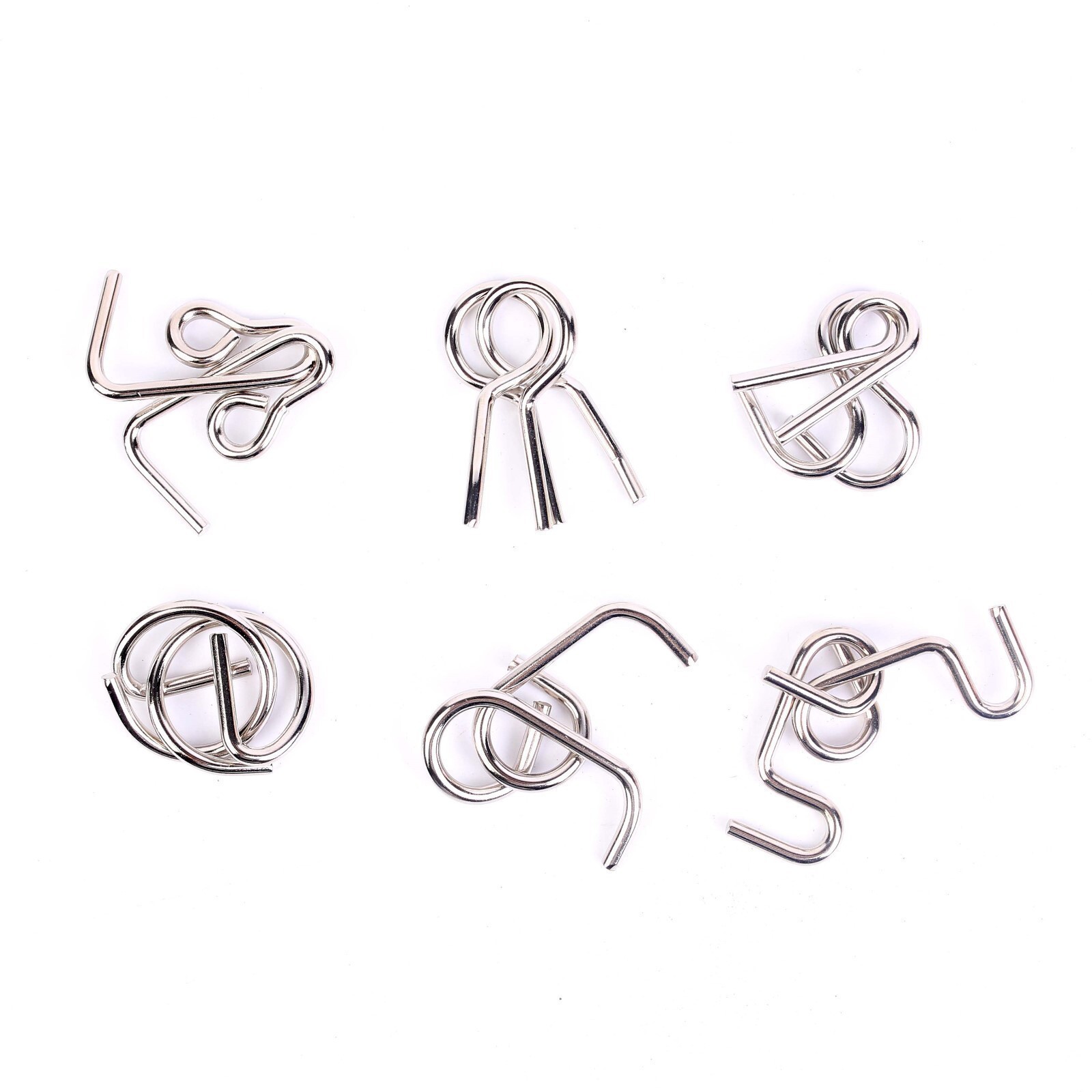 Сможете найти ответы на все задачи? В коробке вас ждет шесть металлических головоломок с элементами разной формы. Найдите решение, как разъединить элементы, а потом соединить их обратно. Настоящая зарядка для ума!