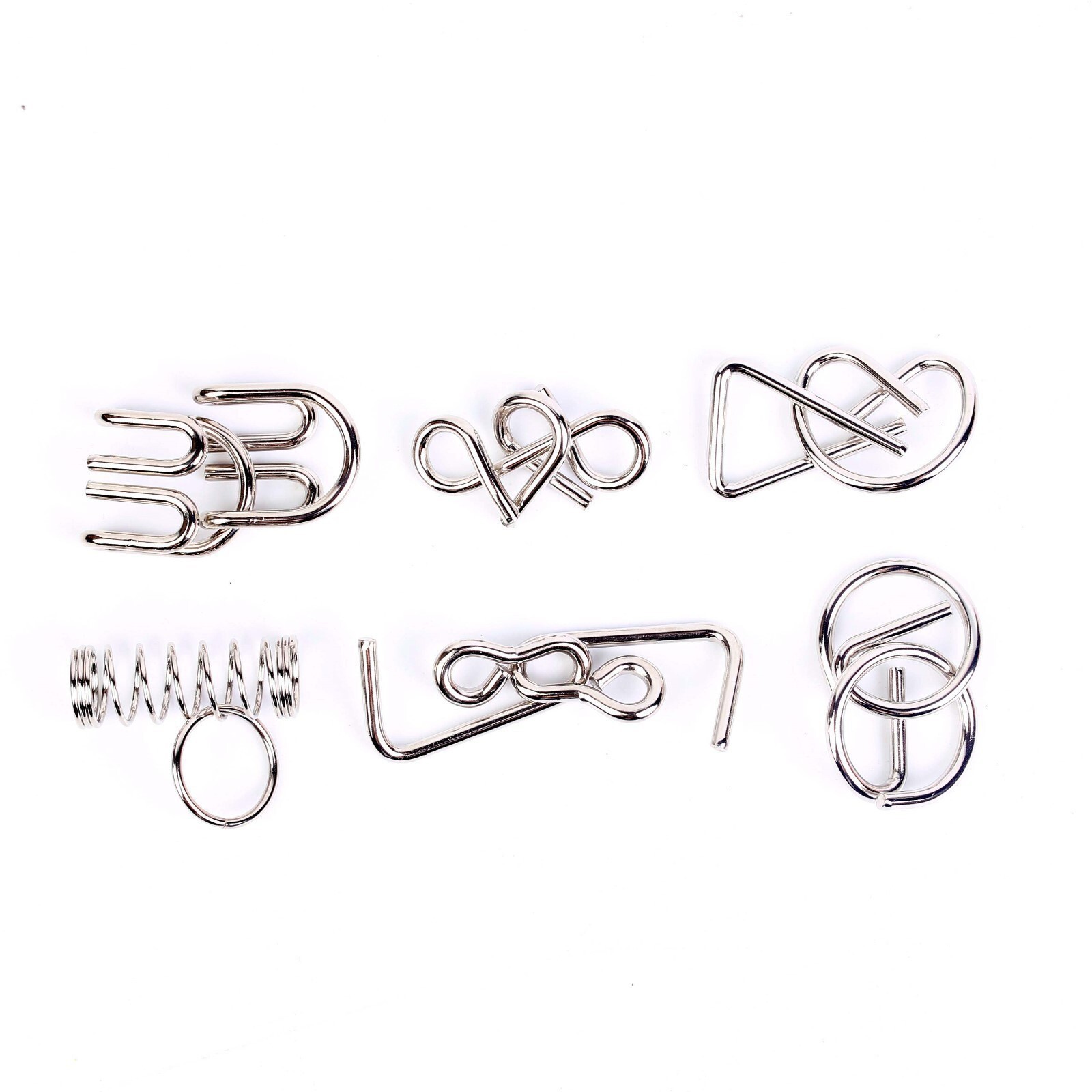 Данный набор из шести металлических головоломок станет хорошей зарядкой для ума. Придумайте, как разъединить переплетенные между собой элементы, а затем соедините их обратно. Найдите решение для всех задач!